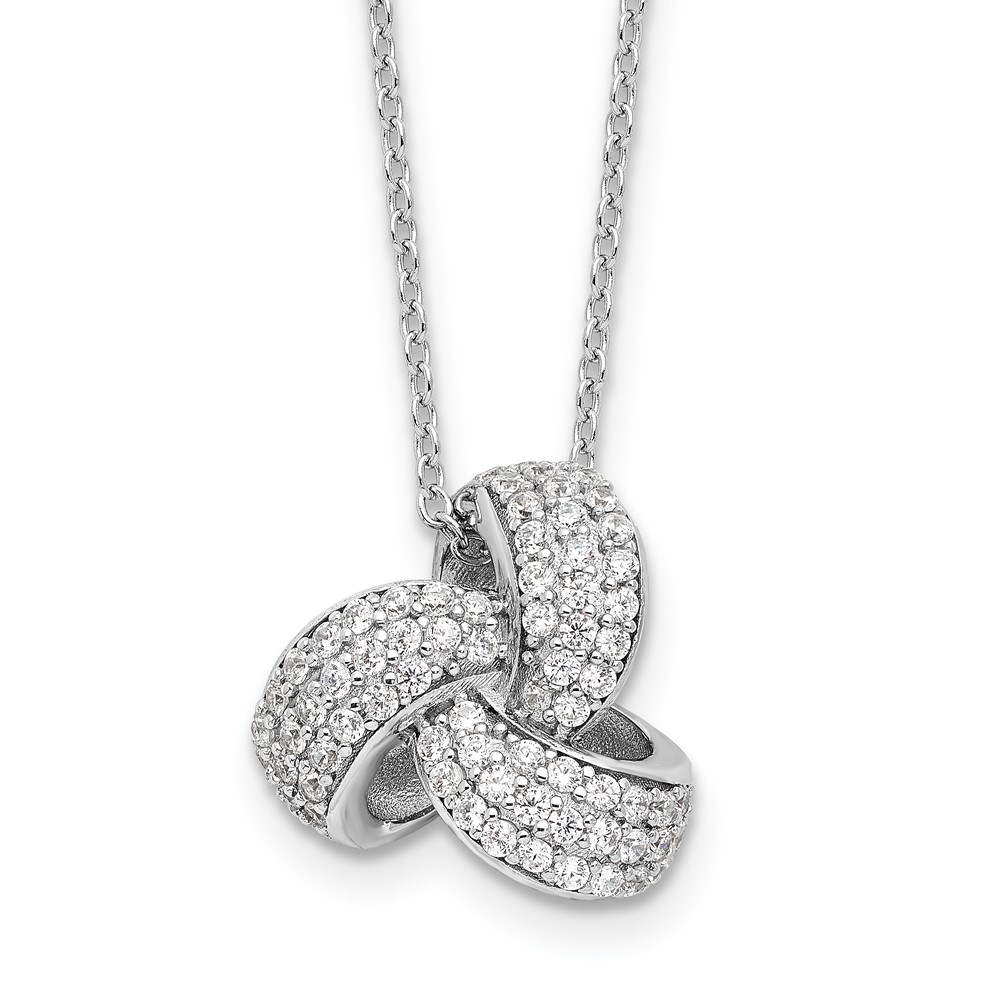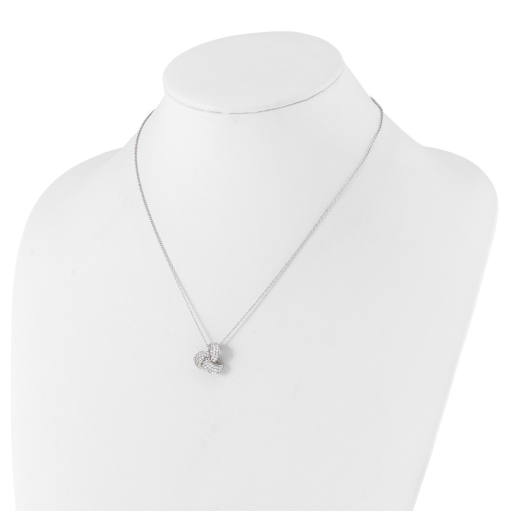 Cheryl M Sterling Silver Rhodium-plated Brilliant-cut Pave CZ Love Knot 18 Inch Necklace with 2 Inch Extender