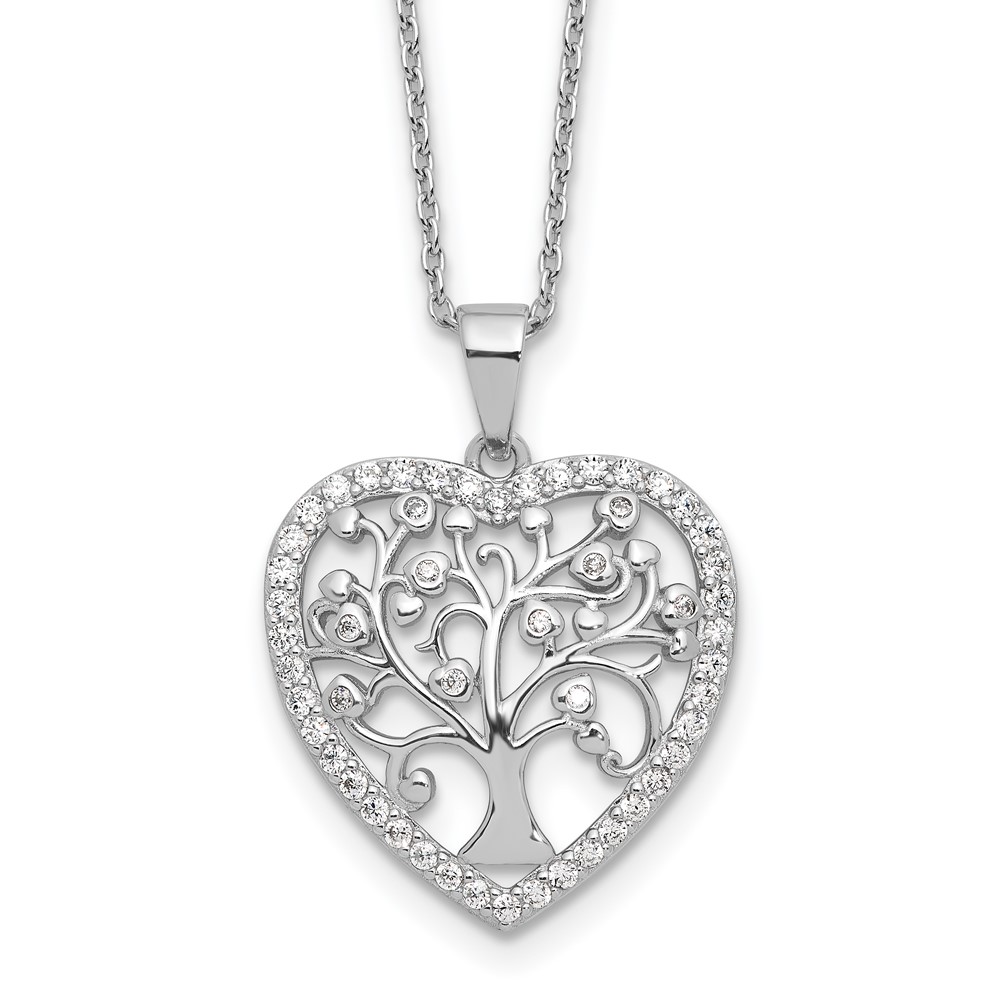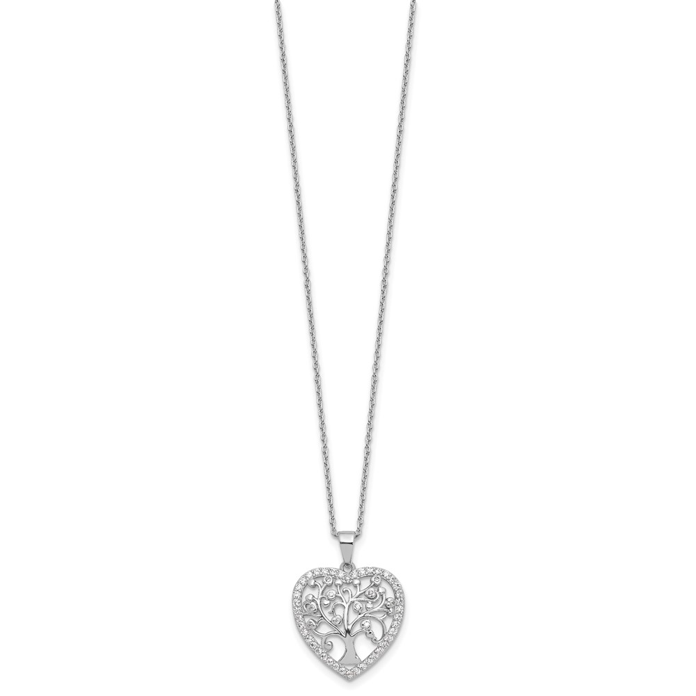 Cheryl M Sterling Silver Rhodium-plated Brilliant-cut CZ Tree of Life Heart 18 Inch Necklace with 2 Inch Extender
