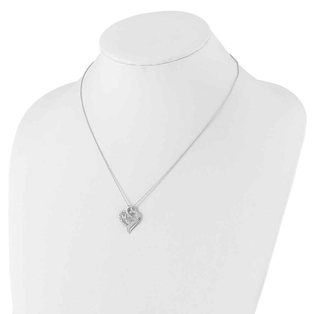 Cheryl M Sterling Silver Rhodium-plated Brilliant-cut CZ MOM Heart 18 Inch Necklace with 2 Inch Extender