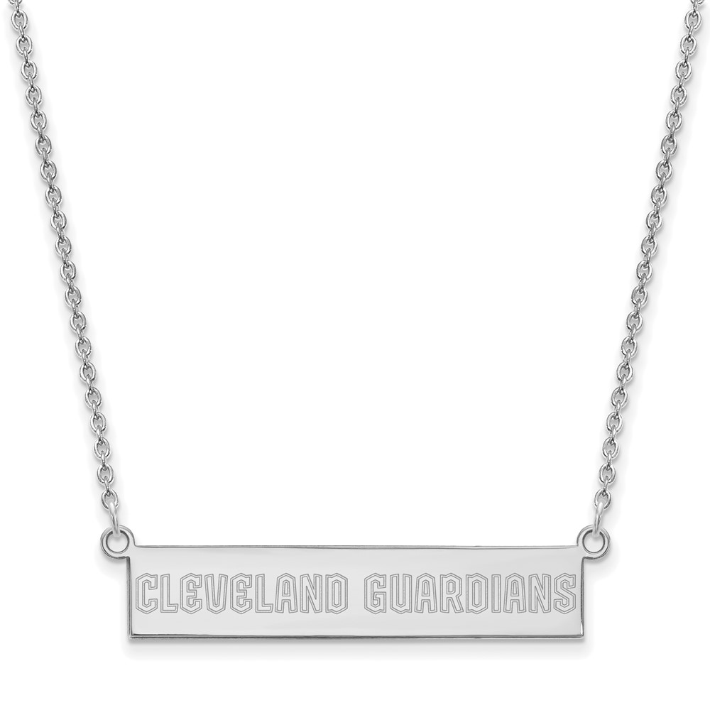 Sterling Silver Rhodium Plated Major League Baseball LogoArt Cleveland Guardians Small Bar Necklace