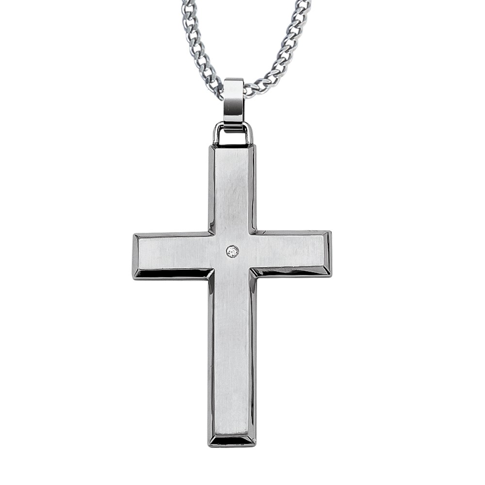 IBGoodman Stainless Steel with .01 carat Diamond Cross with 24 inch Curb Chain Necklace