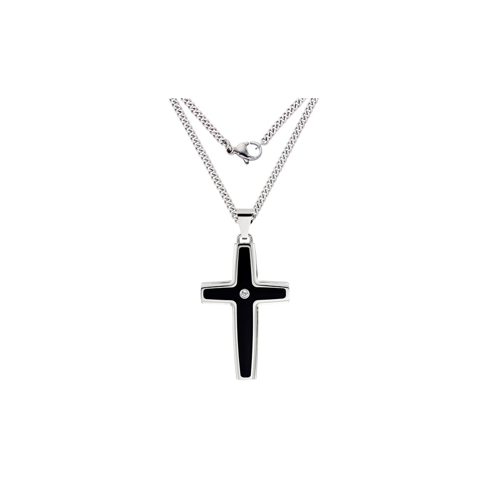 IBGoodman Stainless Steel with .03 carat Diamond Black Enameled Cross with 24 inch Curb Chain Necklace