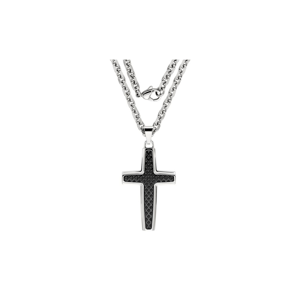 IBGoodman Stainless Steel Black IP-plated Textured Center Cross with 24 inch Curb Chain Necklace