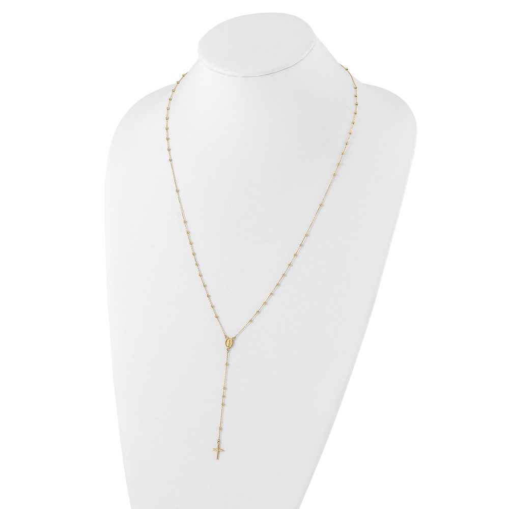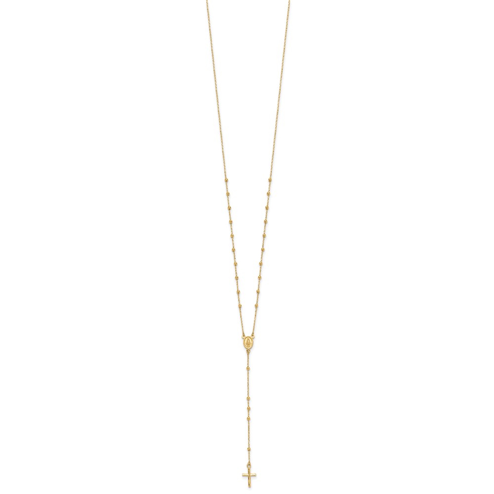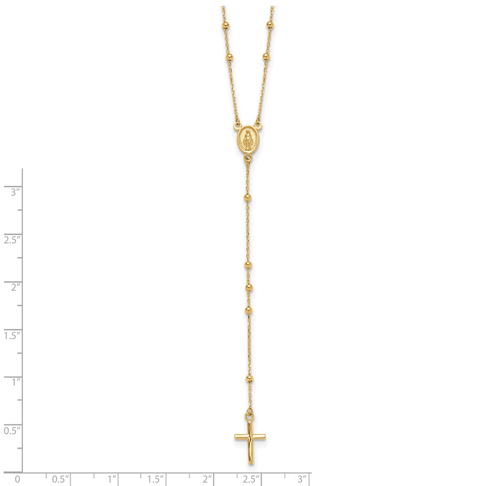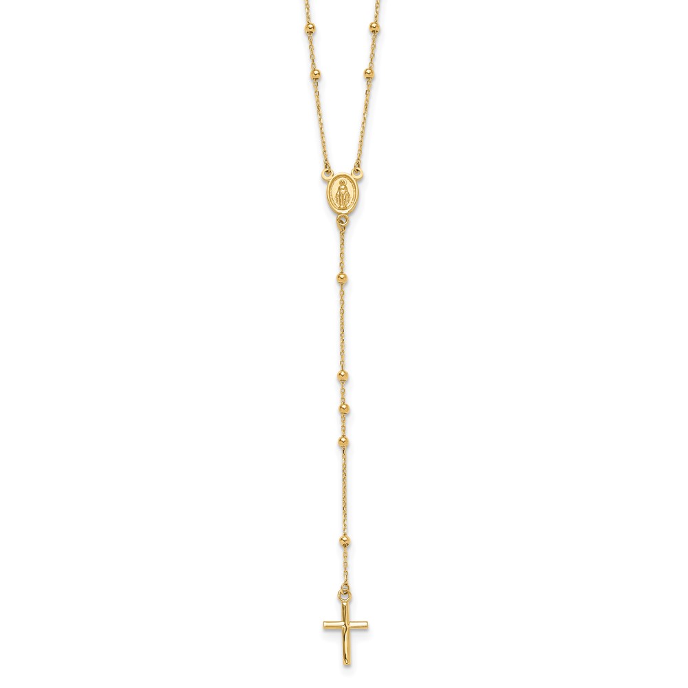 14K Polished Cross and Miraculous Medal Beaded 24.5 inch Rosary