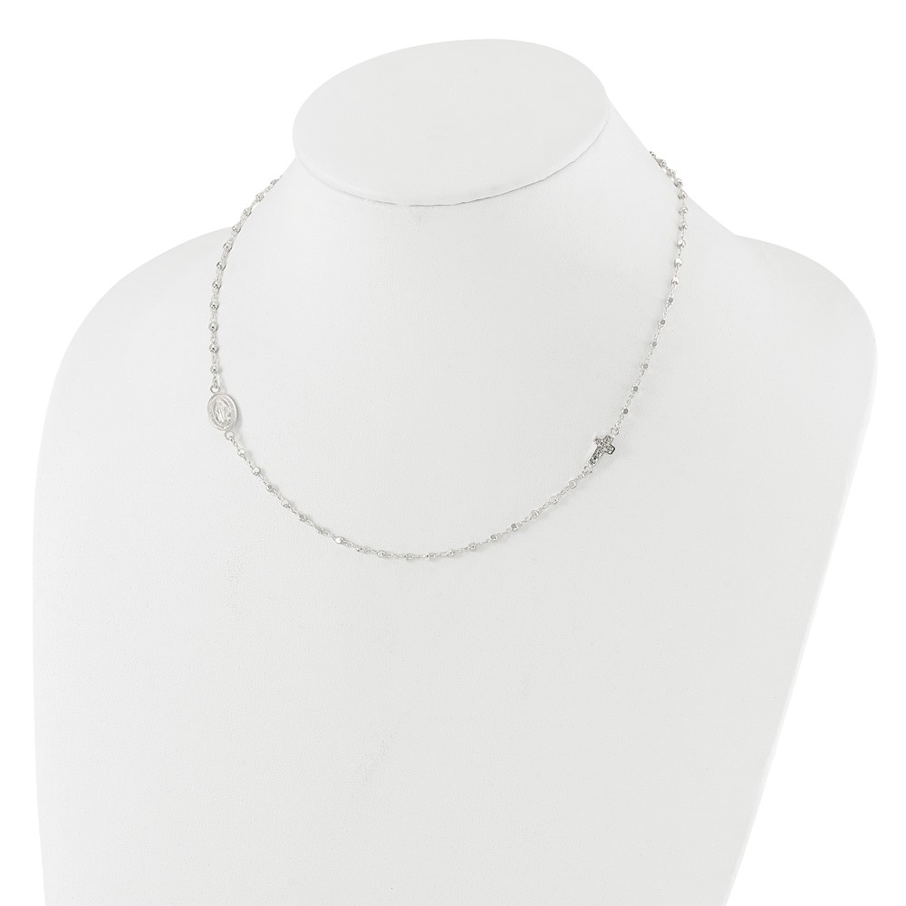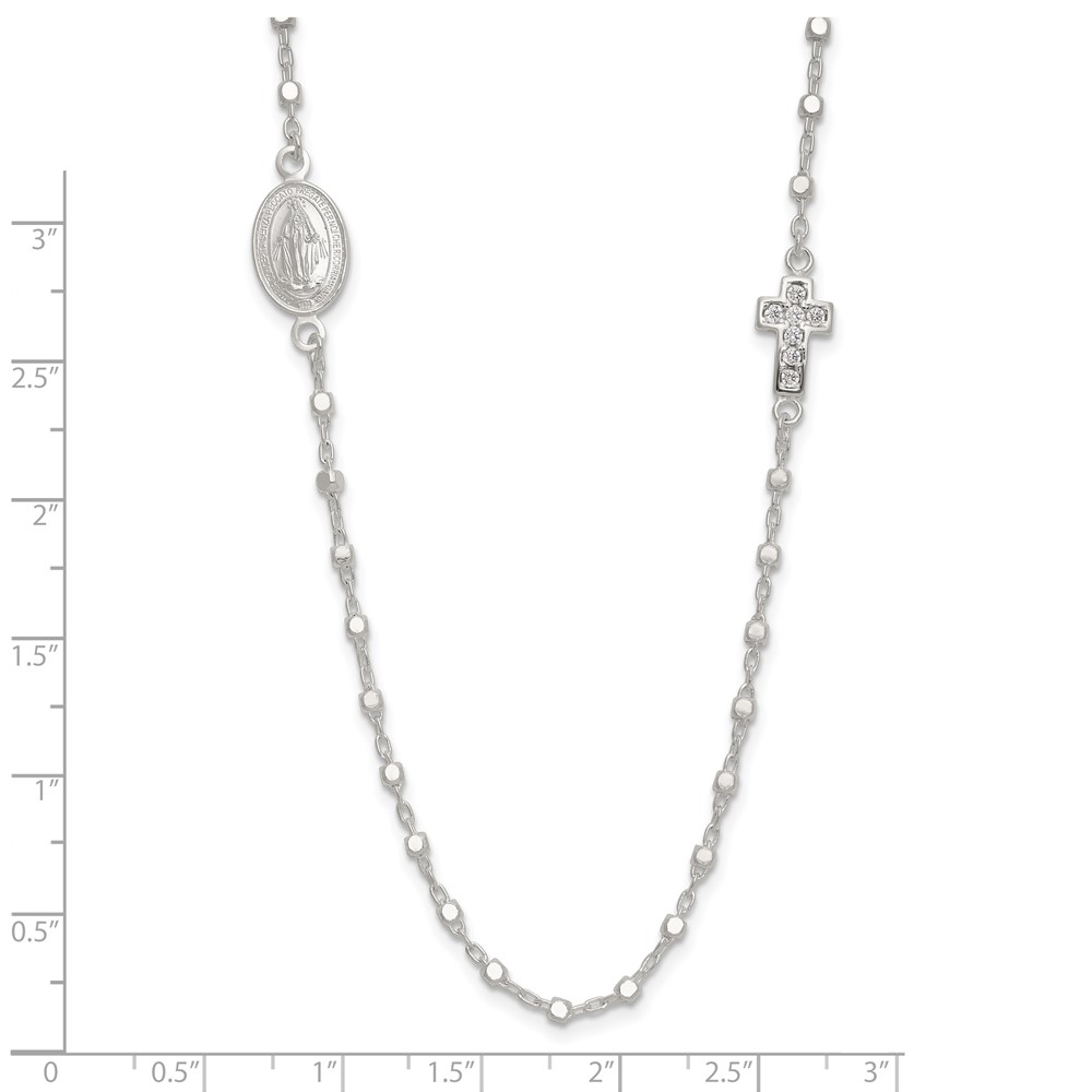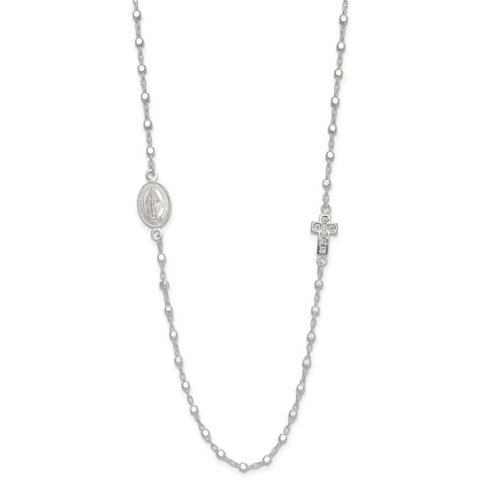 Sterling Silver Polished with CZ Cross and Miraculous Medal 18in Necklace
