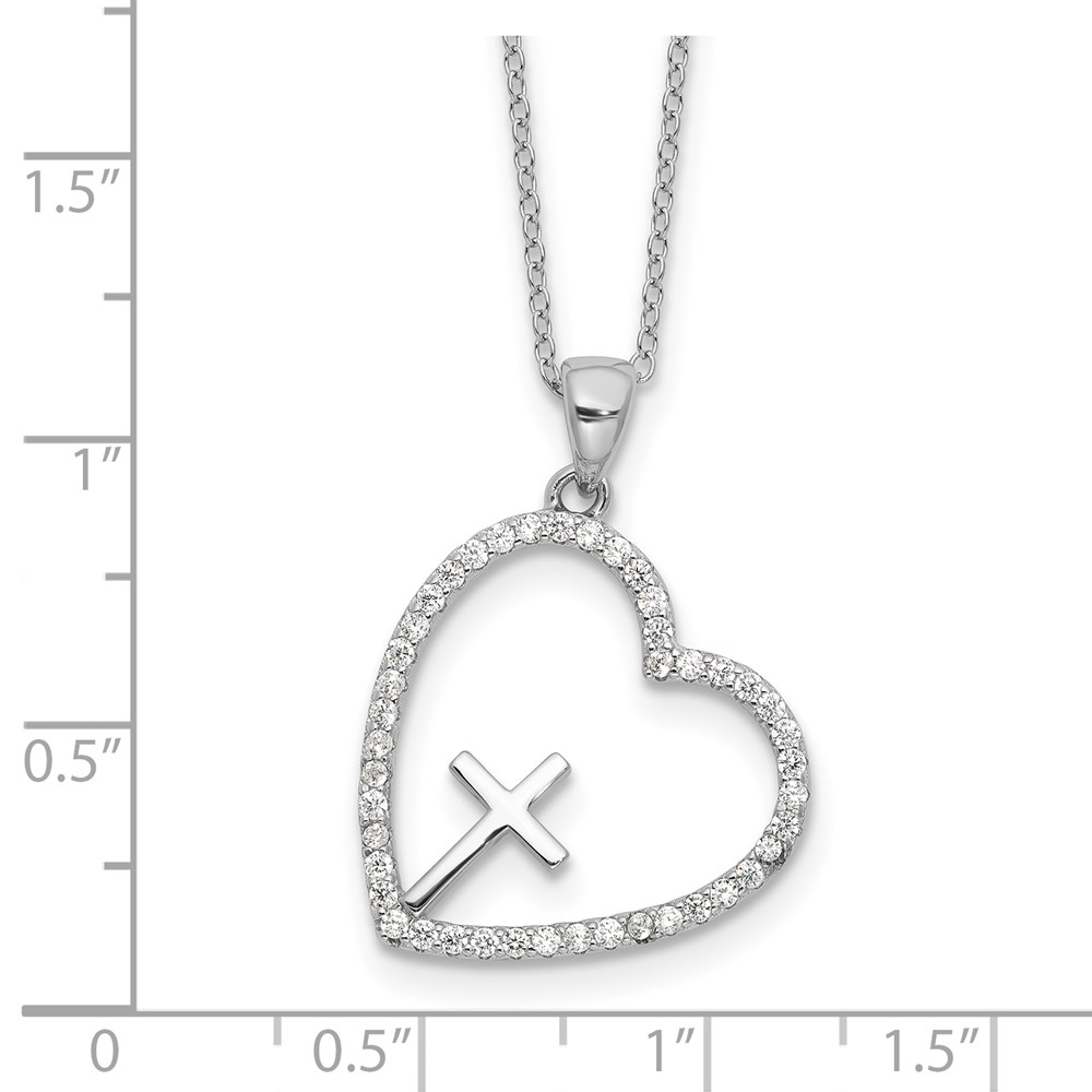 Sterling Silver Rhodium-plated CZ Open Heart with Cross 18in Necklace