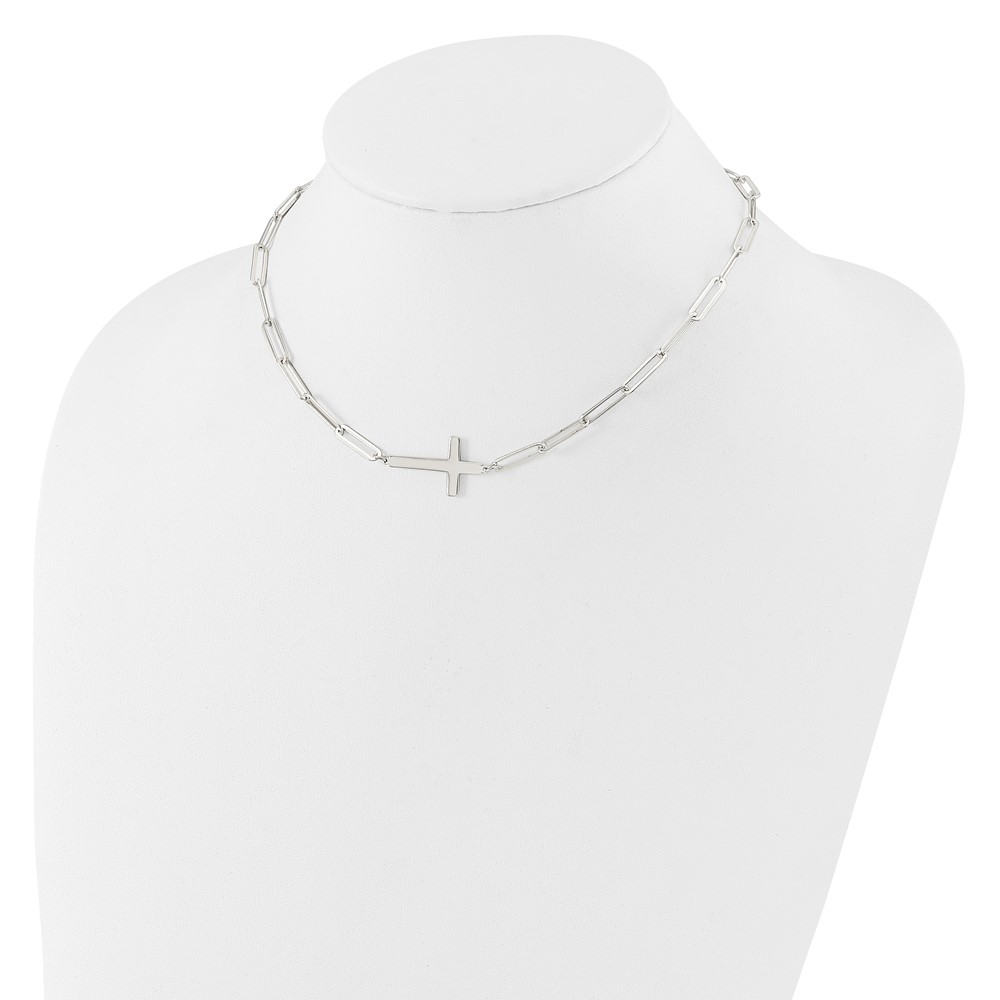 Chisel Stainless Steel Polished Sideways Cross on a 16 inch Cable Chain Necklace