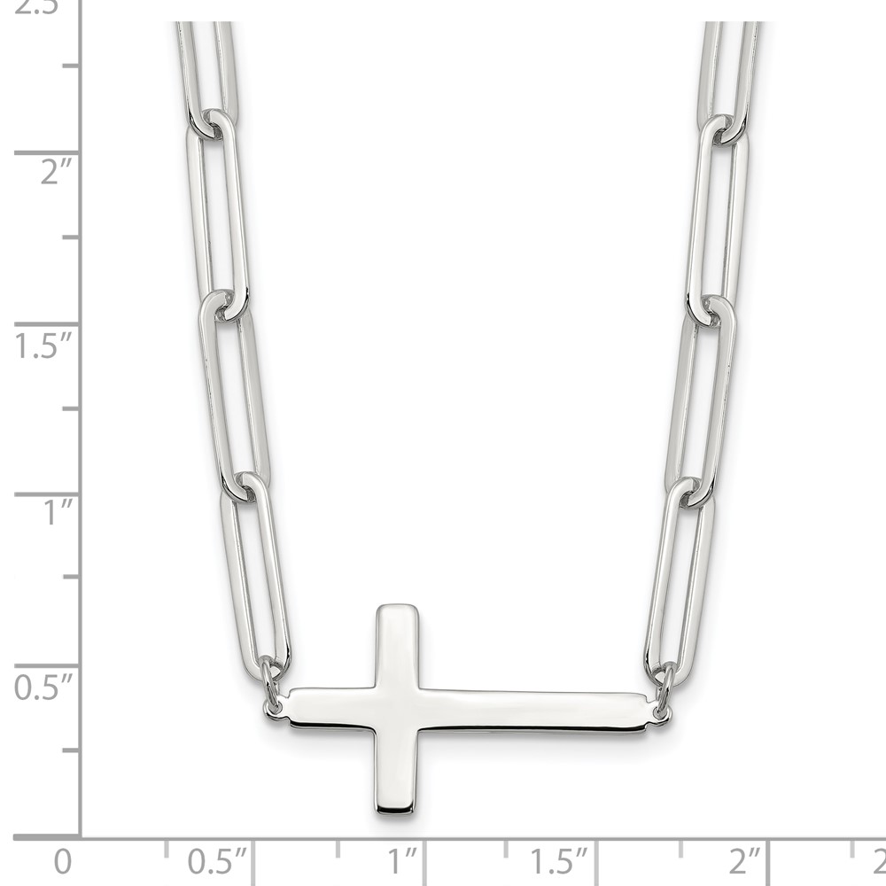 Sterling Silver E-Coated Cross Paperclip Link w/2 in ext Necklace