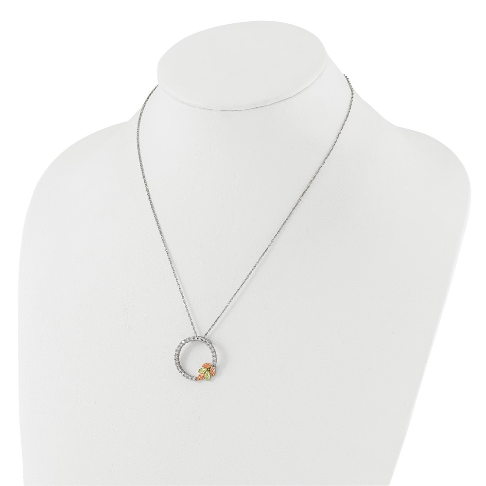 Sterling Silver Rhod-pltd w/12K Accents CZ Circle 18in Necklace