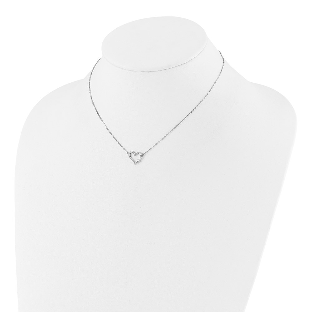 Sterling Silver Rhodium-plated Heart w/Cross 13in w/2in ext. Necklace