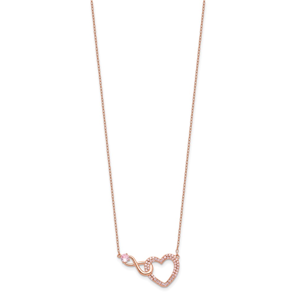 Sterling Silver Rose-tone Pink CZ Heart Infinity w/2IN Ext Necklace