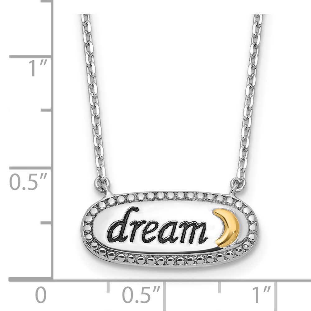 Sterling Silver w/14k Accent Rh-plated Enamel DREAM w/2 in ext Necklace