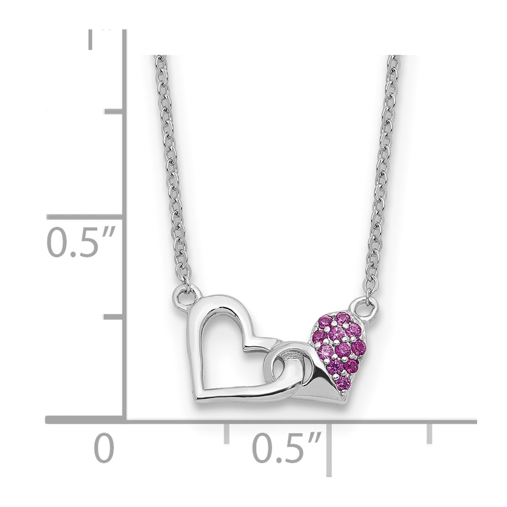 Sterling Silver Rhodium-plated with Pink CZ Hearts 16in w/2in ext Necklace