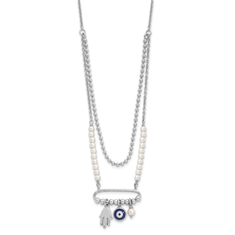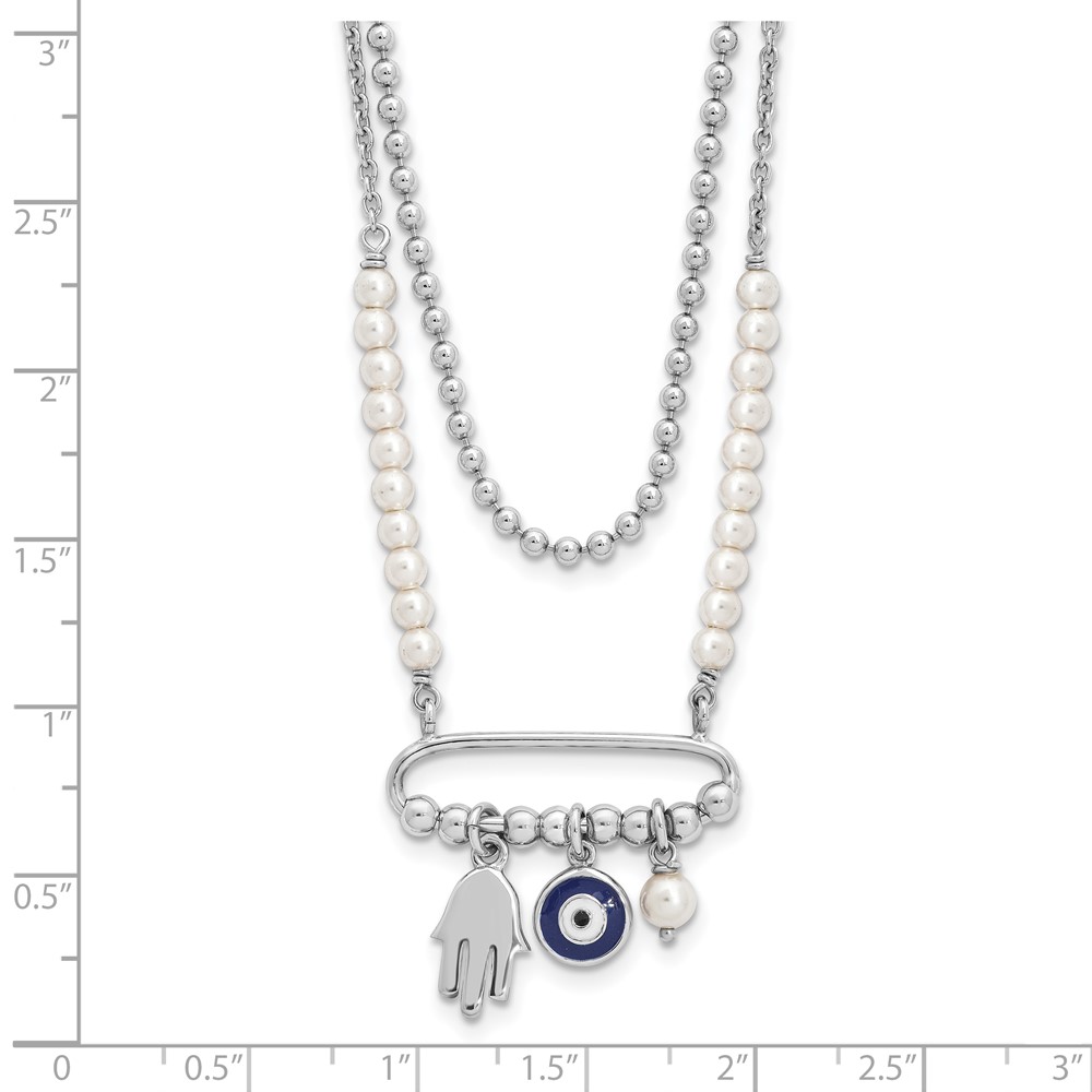 Sterling Silver RH Enamel Eye Hamsa Glass Pearl 16in w/2in ext Necklace
