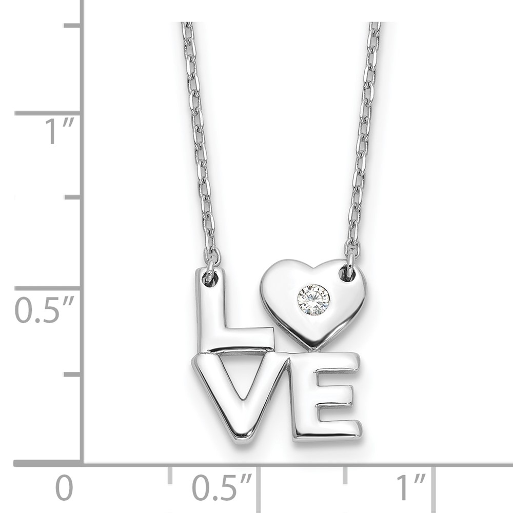 Sterling Silver Rhodium-plated CZ LOVE 16in w/2in ext. Necklace