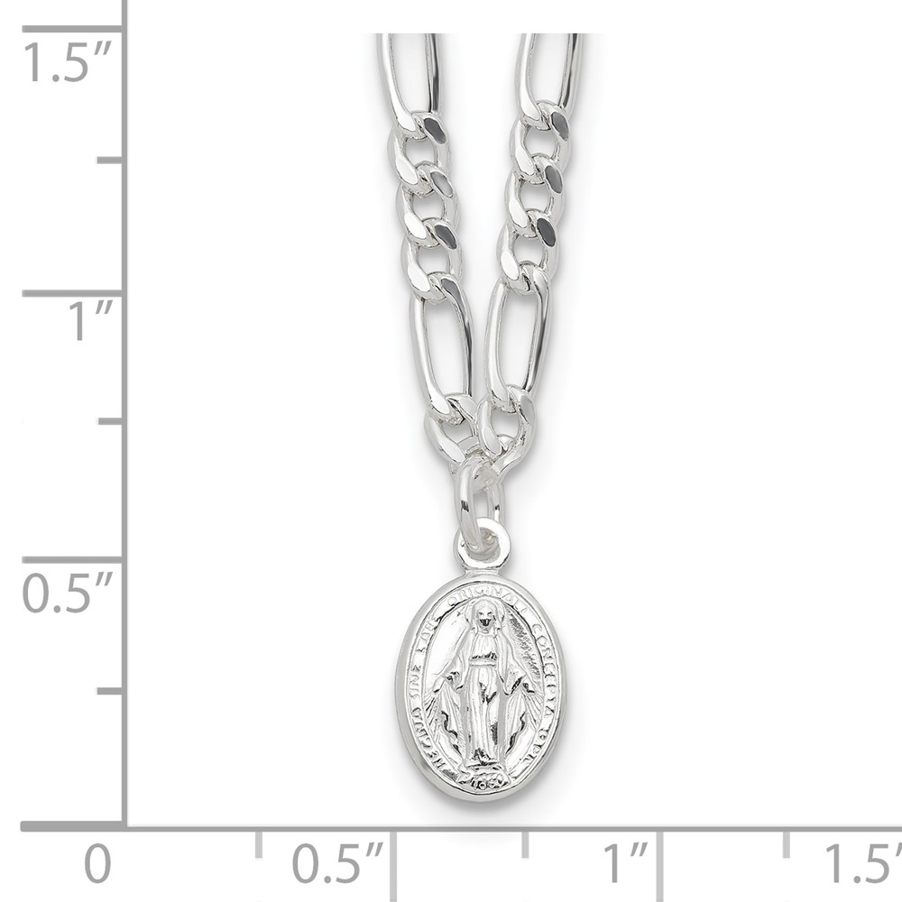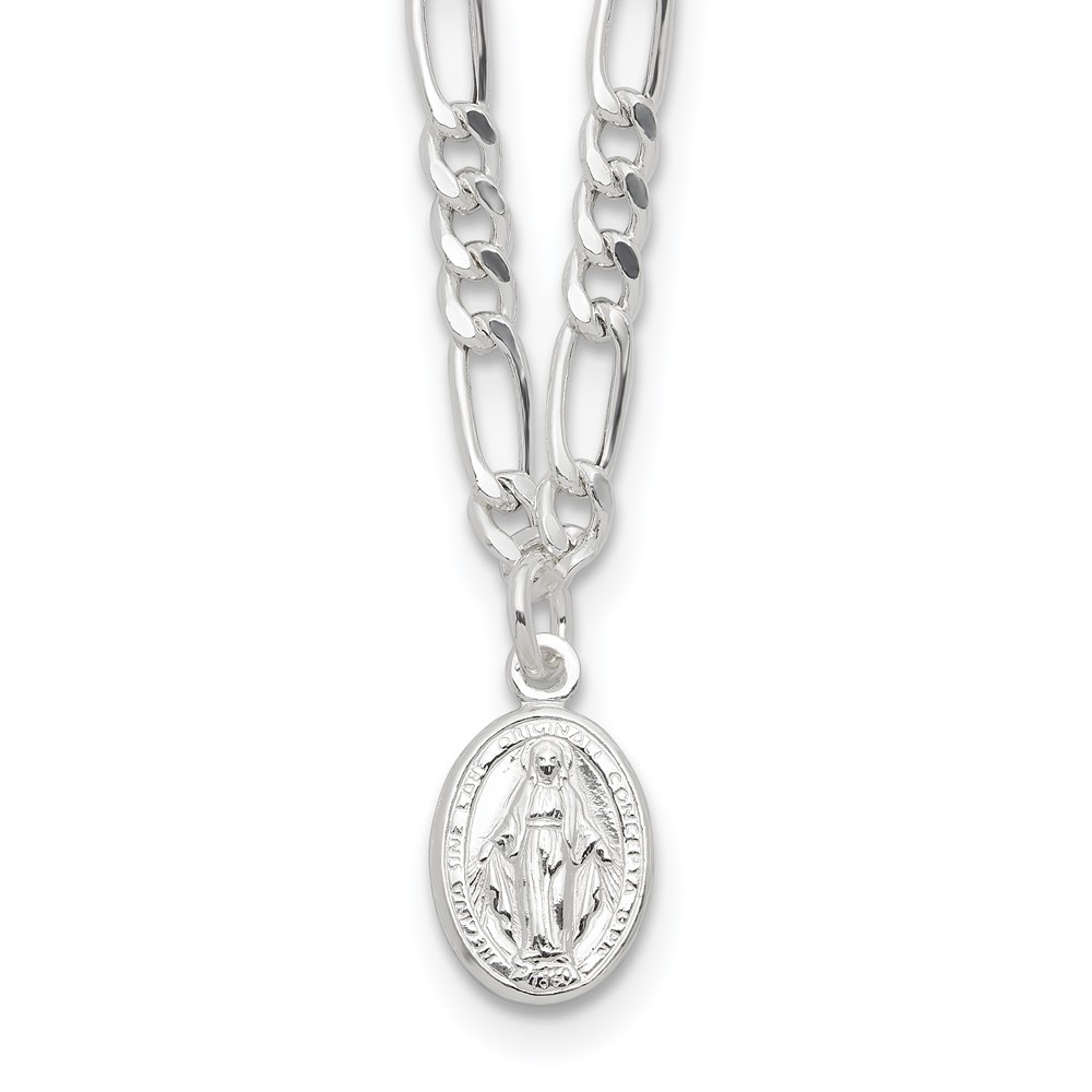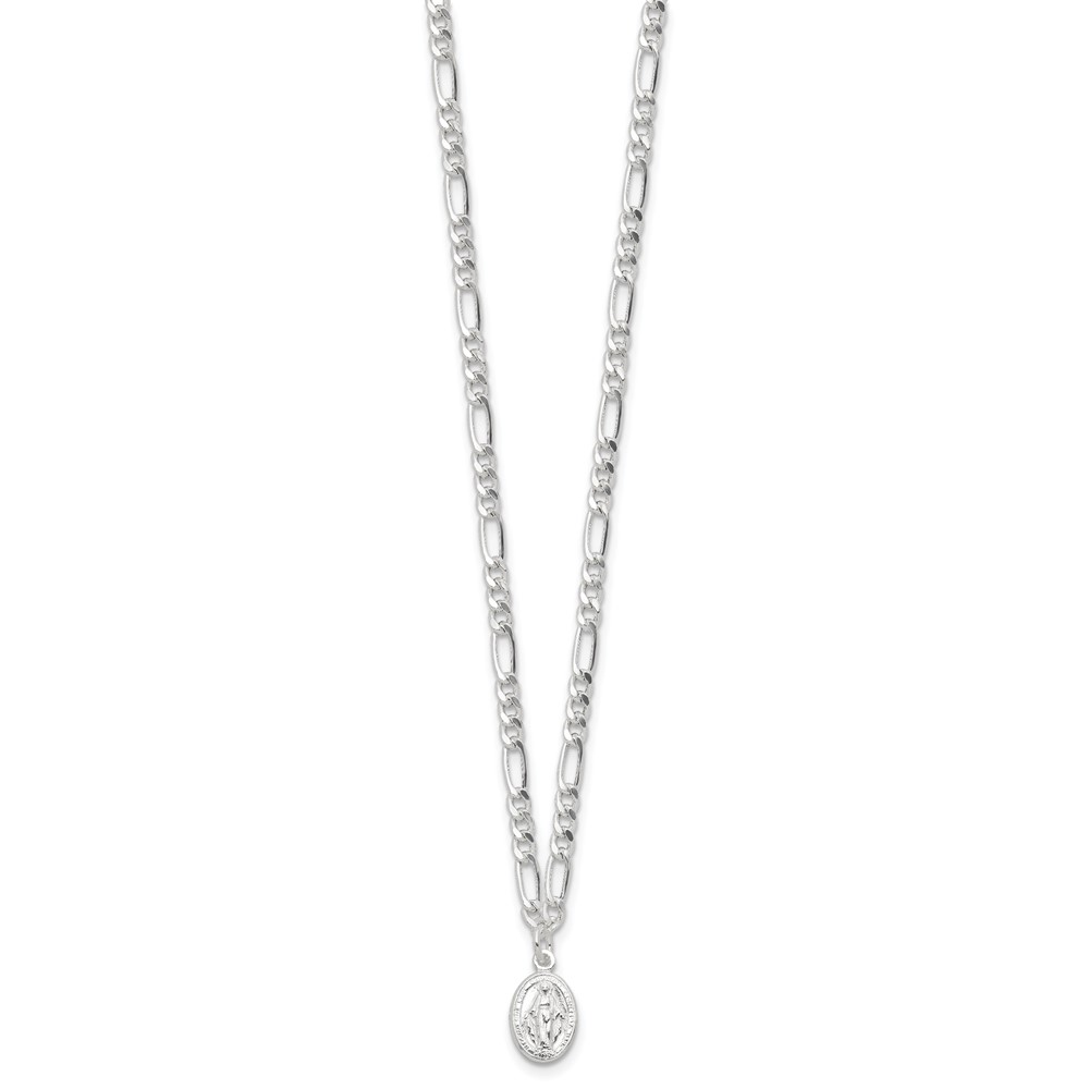 Sterling Silver RH-plated Miraculous Medal Link 16in w/2in ext. Necklace