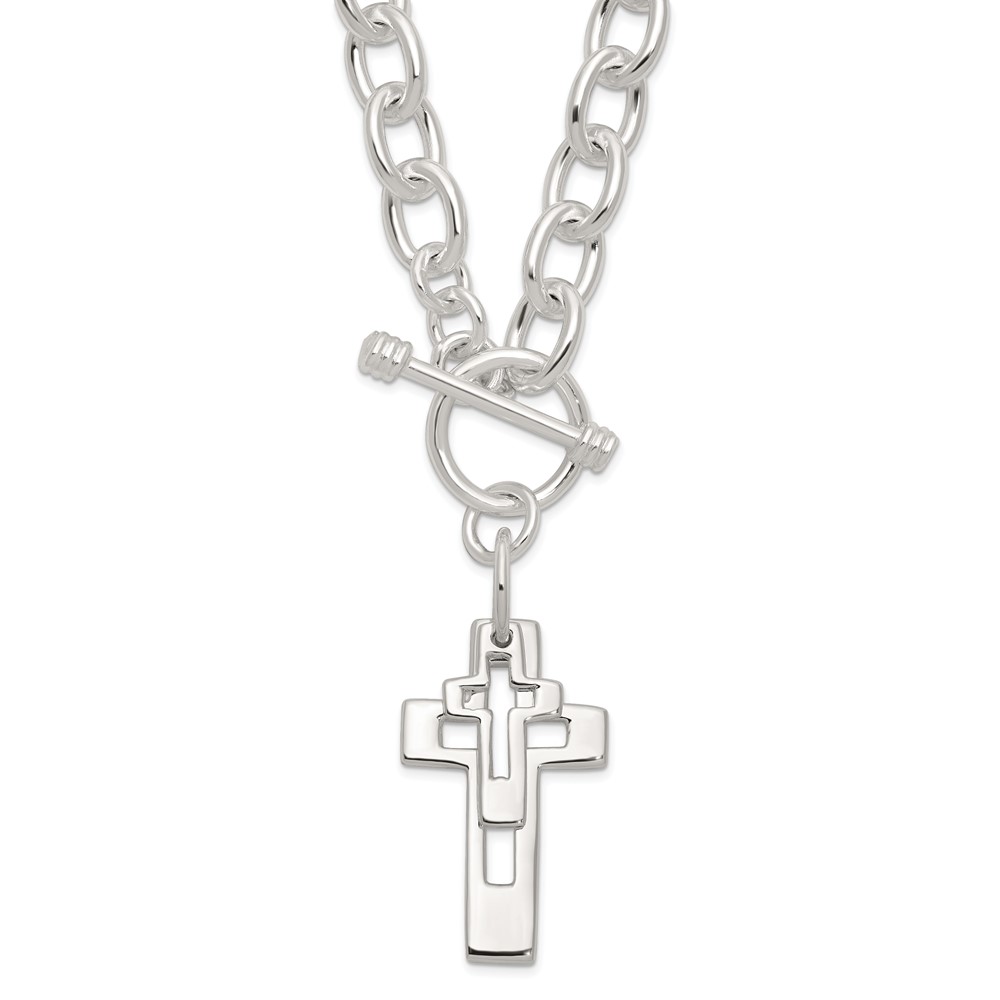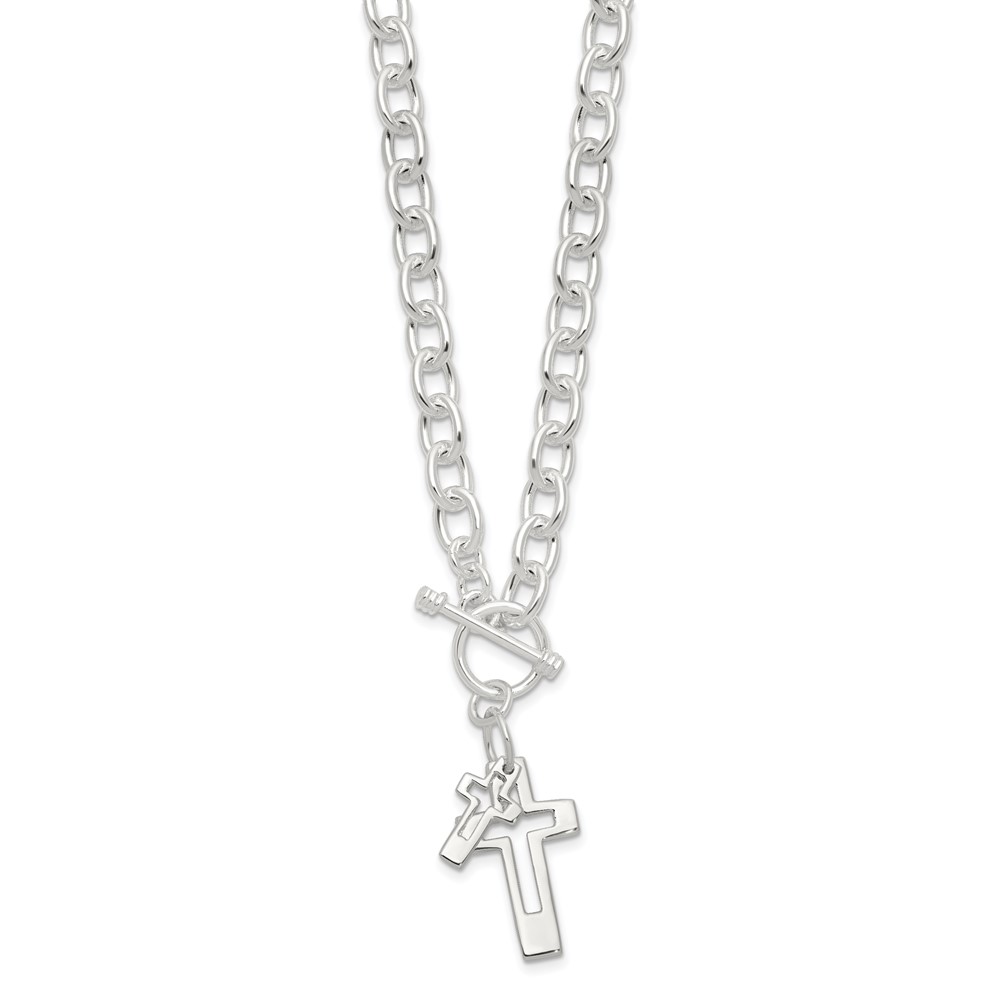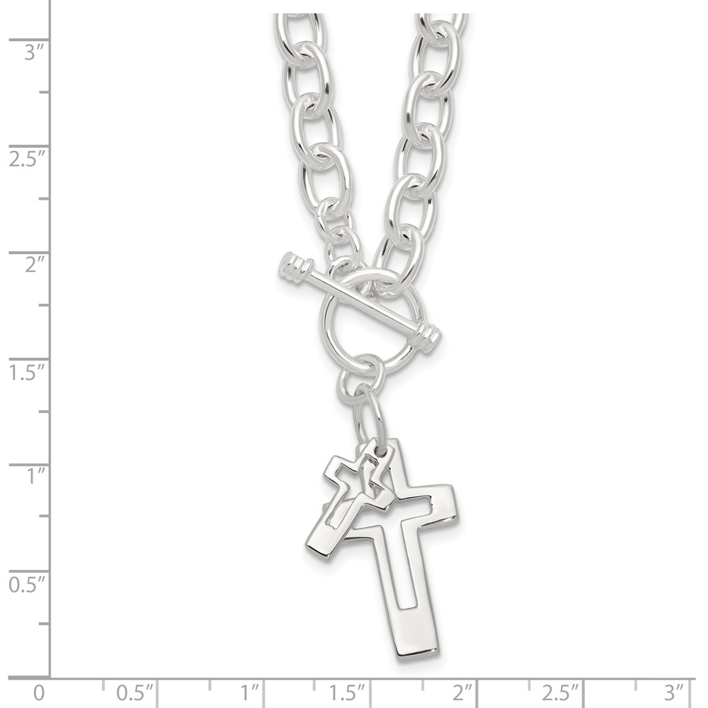 Sterling Silver E-Coated Double Open Cross Toggle 18in Necklace
