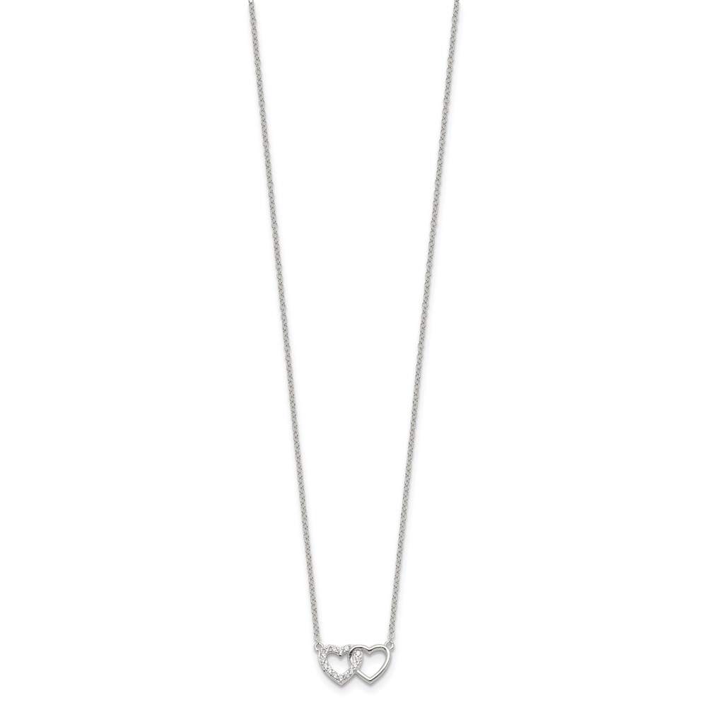 Sterling Silver E-Coating CZ Double Heart 16in w/2in ext Necklace