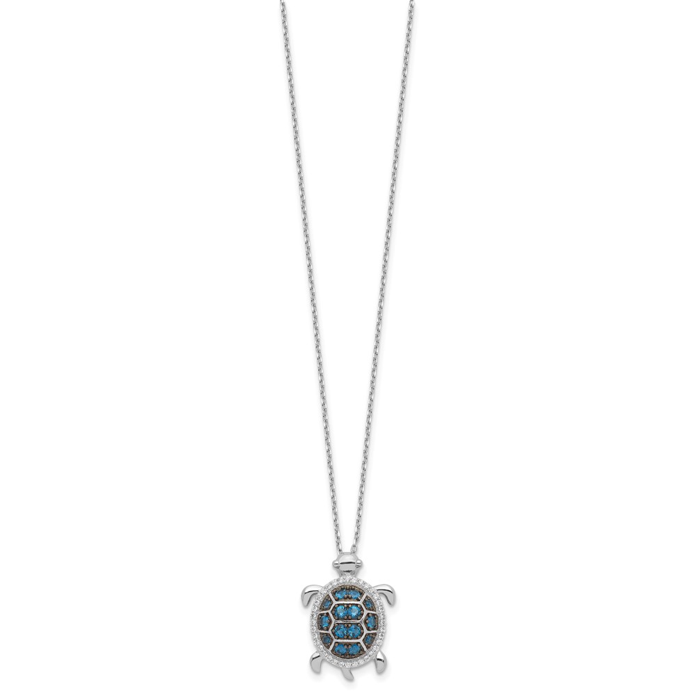 Sterling Silver Rhodium-plated and Black Rhodium CZ Turtle 16 inch with a 2 inch extention Necklace