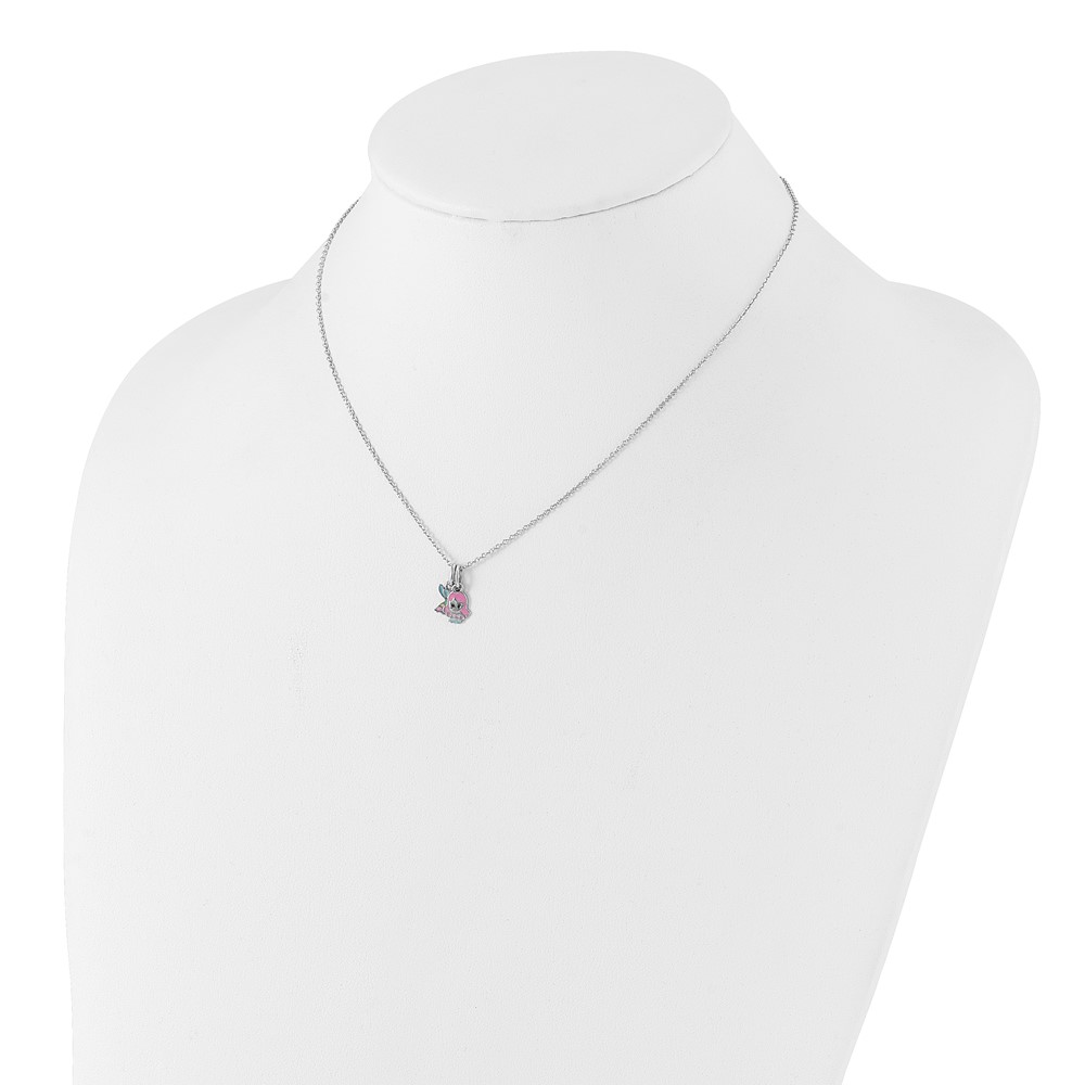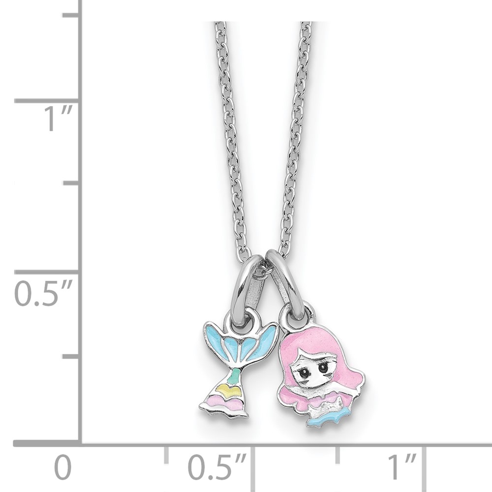 Sterling Silver RH-plated Multi-color Enamel Mermaid Children's Necklace