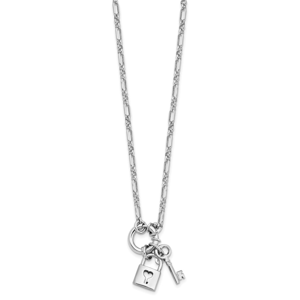 Leslie's Sterling Silver Rhodium-plated Polished Lock and Key Necklace