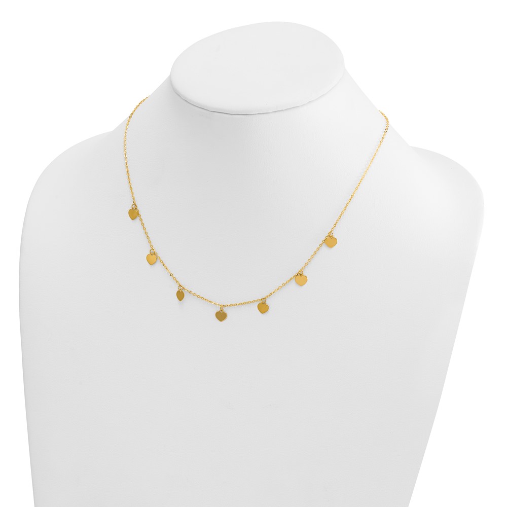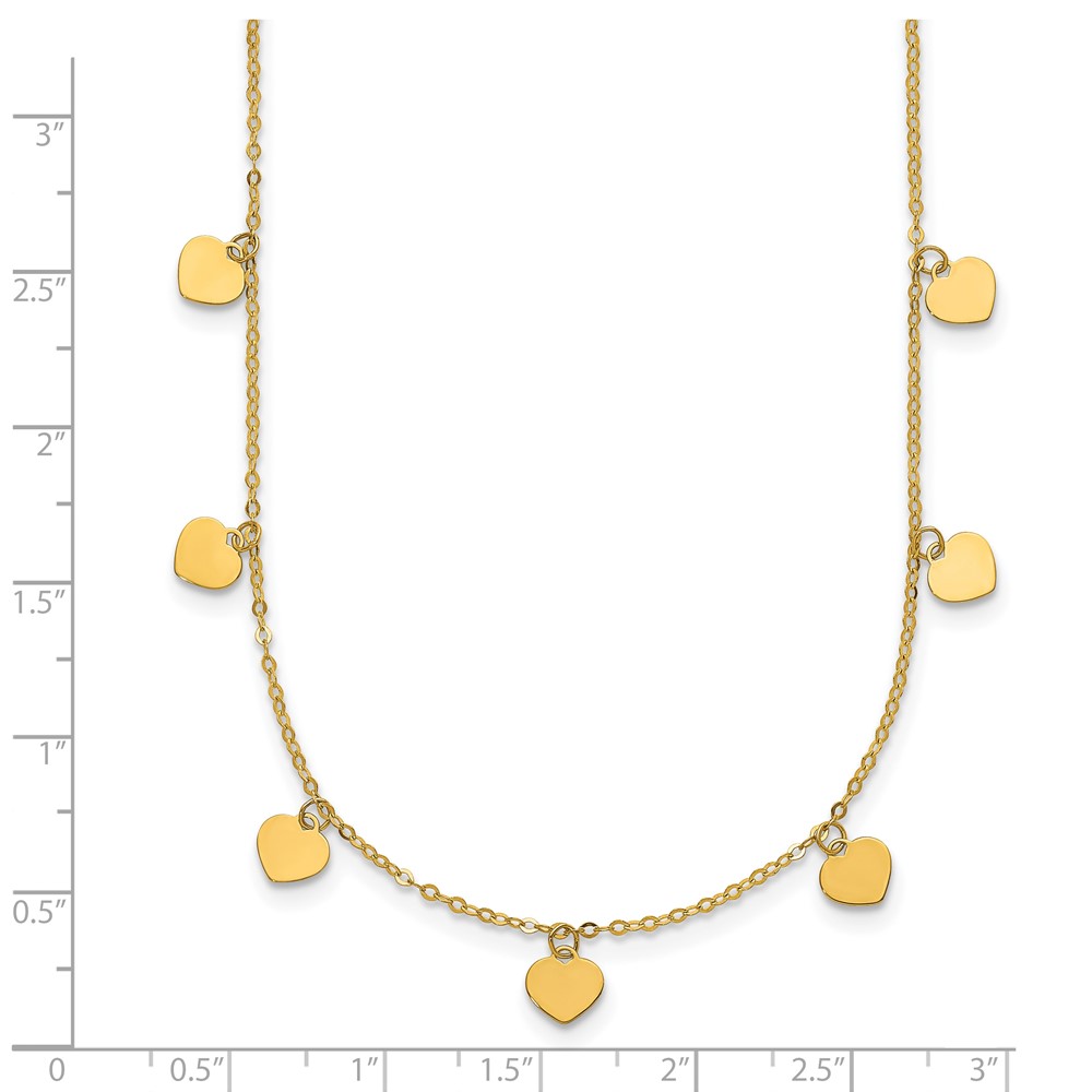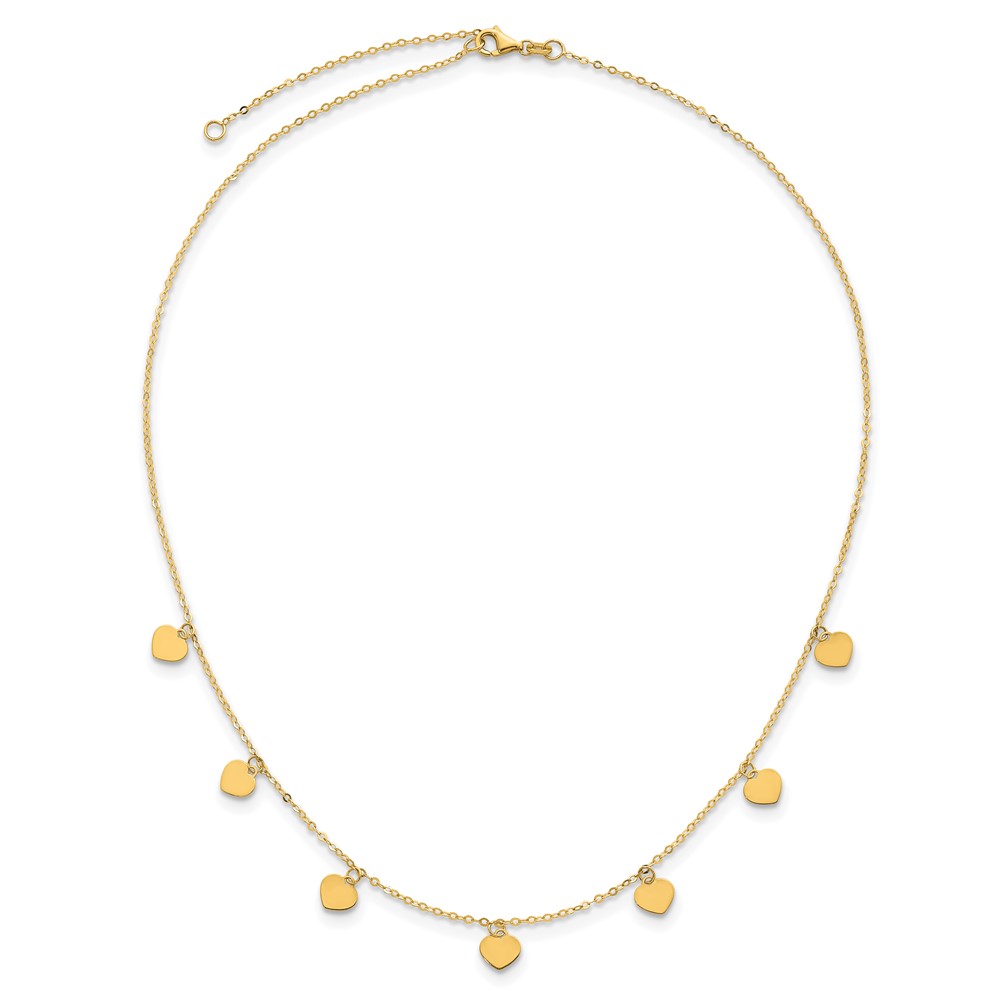 Herco 14K Polished Seven Station Dangle Heart Discs 16 Inch with 2 Inch Extension Necklace