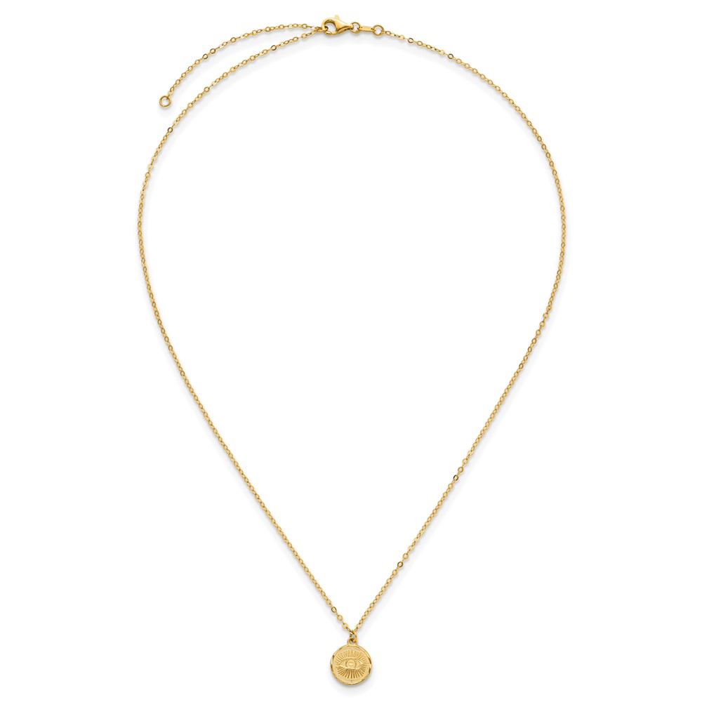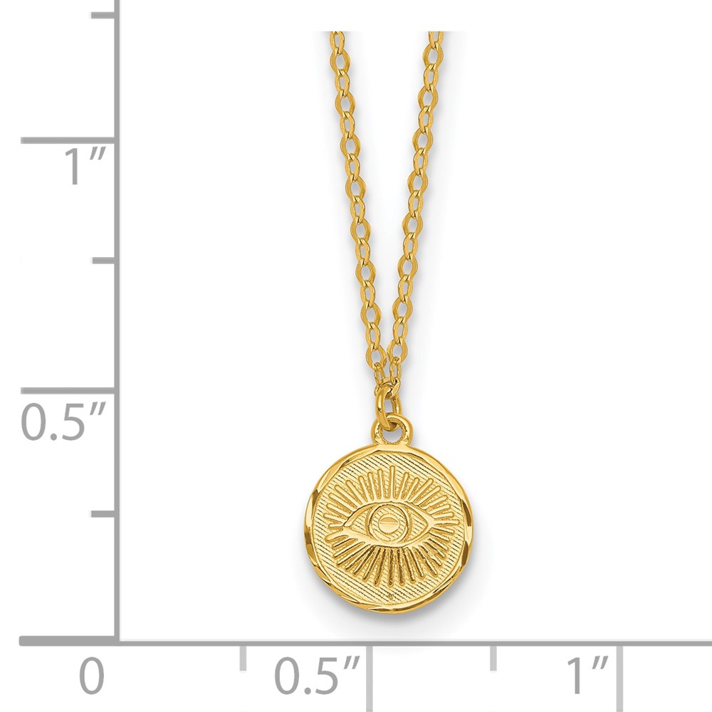 Herco 14K Polished and Textured Circle Disc with Eye on 16 Inch with 2 Inch Extension Necklace