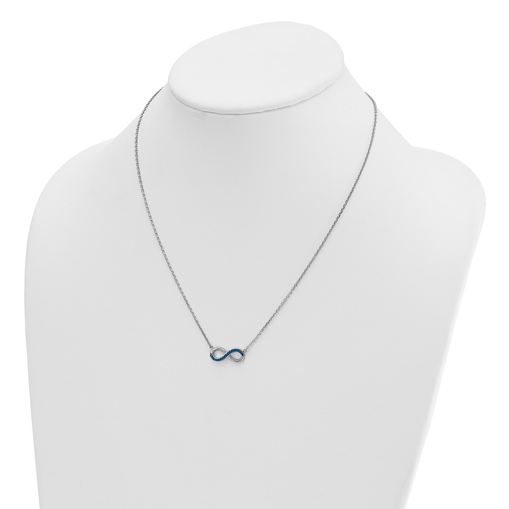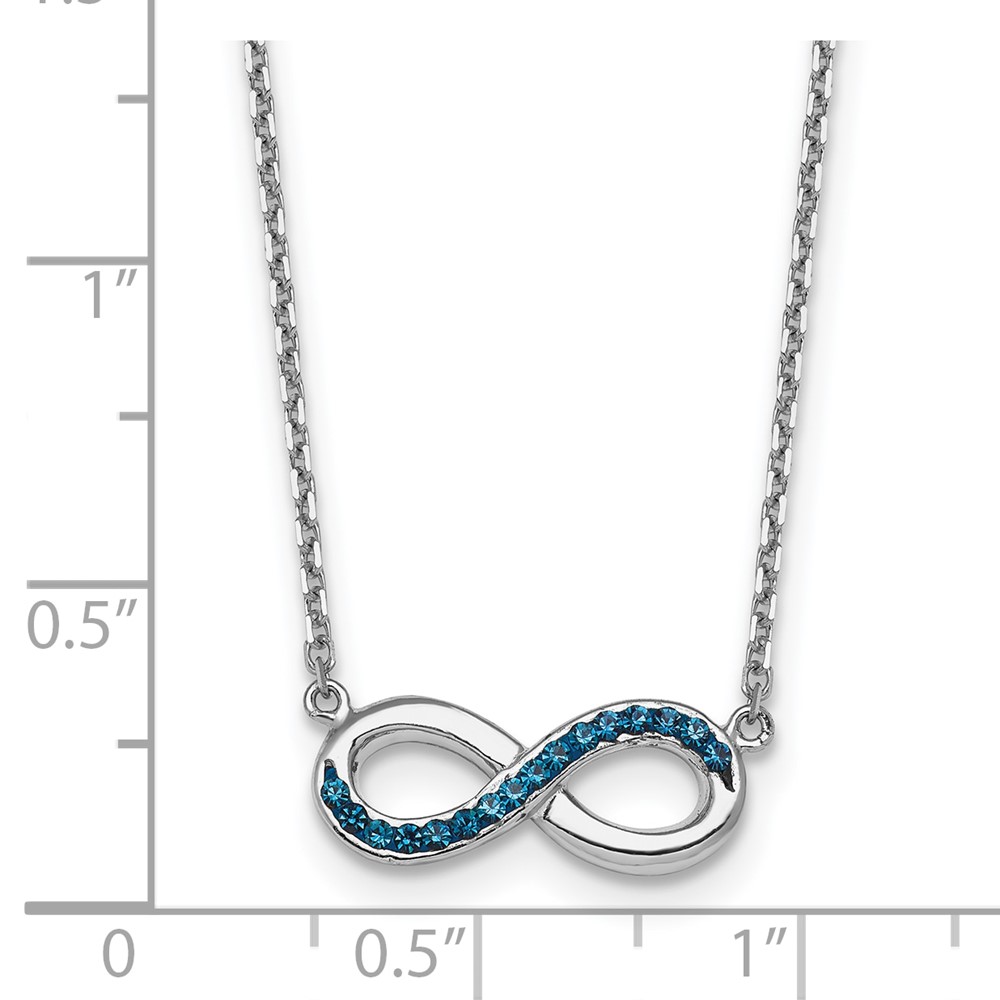 Sterling Silver Rhodium-Plated Polished Blue Crystal Eternity 16.5 inch with a 2 inch extention Necklace