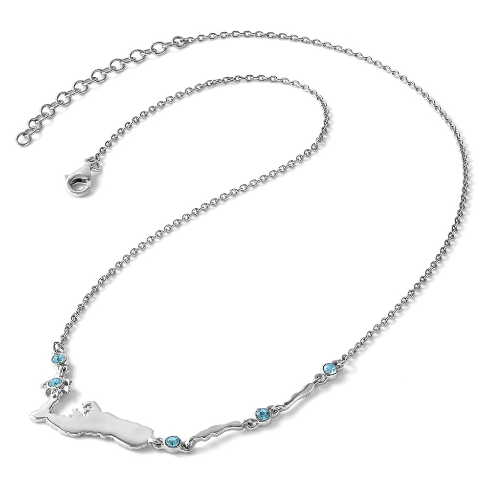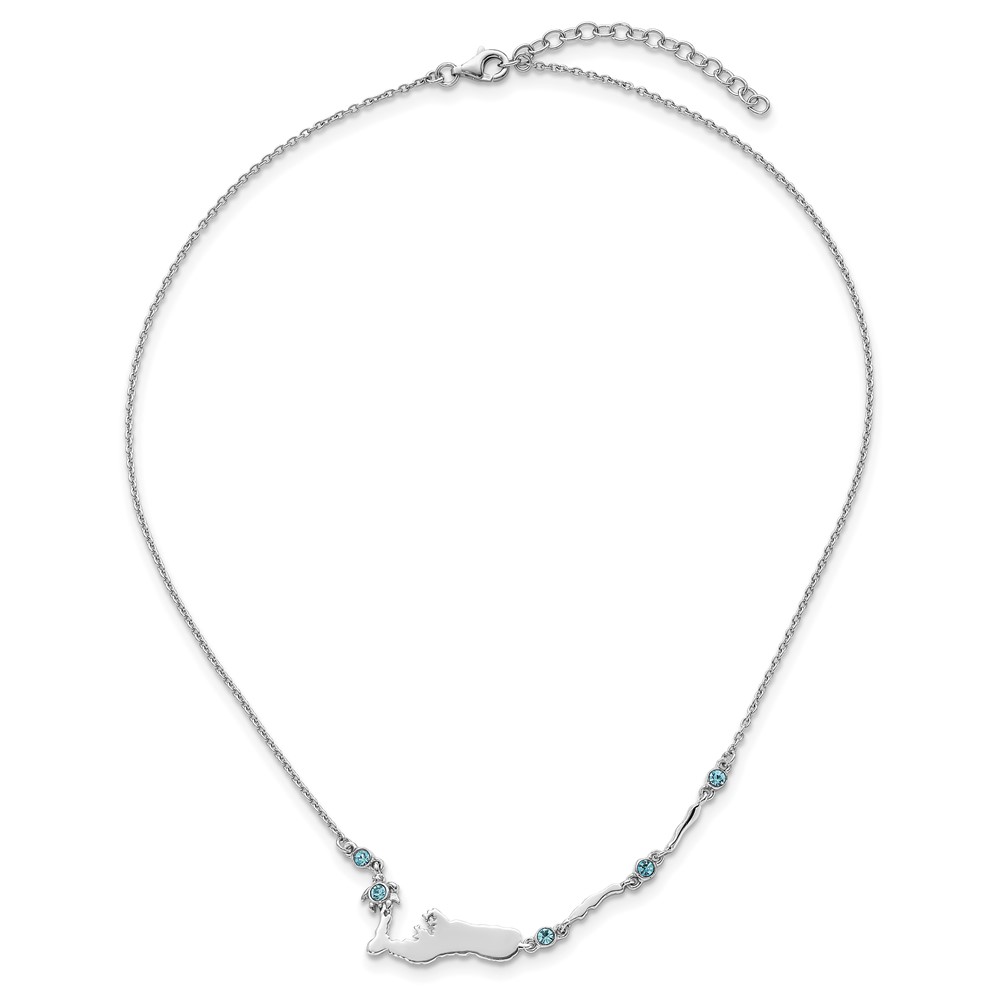 Sterling Silver Rhodium-Plated Polished Crystal Cayman Islands 16 inch with a 1 inch extention Necklace