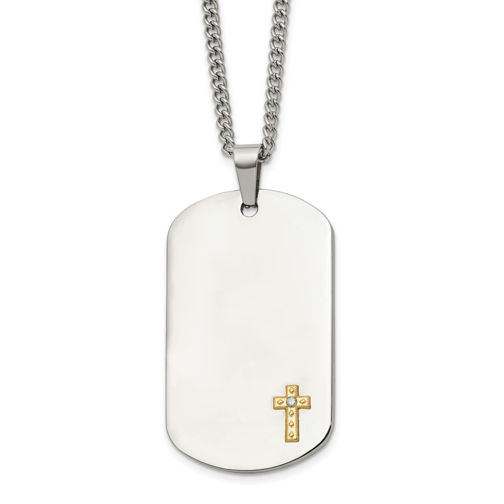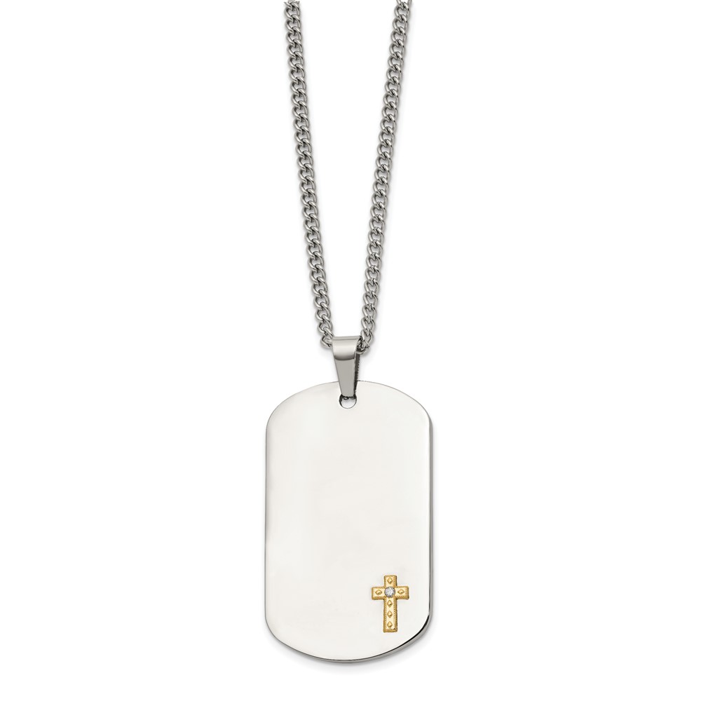 Chisel Stainless Steel Polished with 14K Gold Accent and .02 ct. Diamond Cross Dog Tag on a 24 inch Curb Chain Necklace