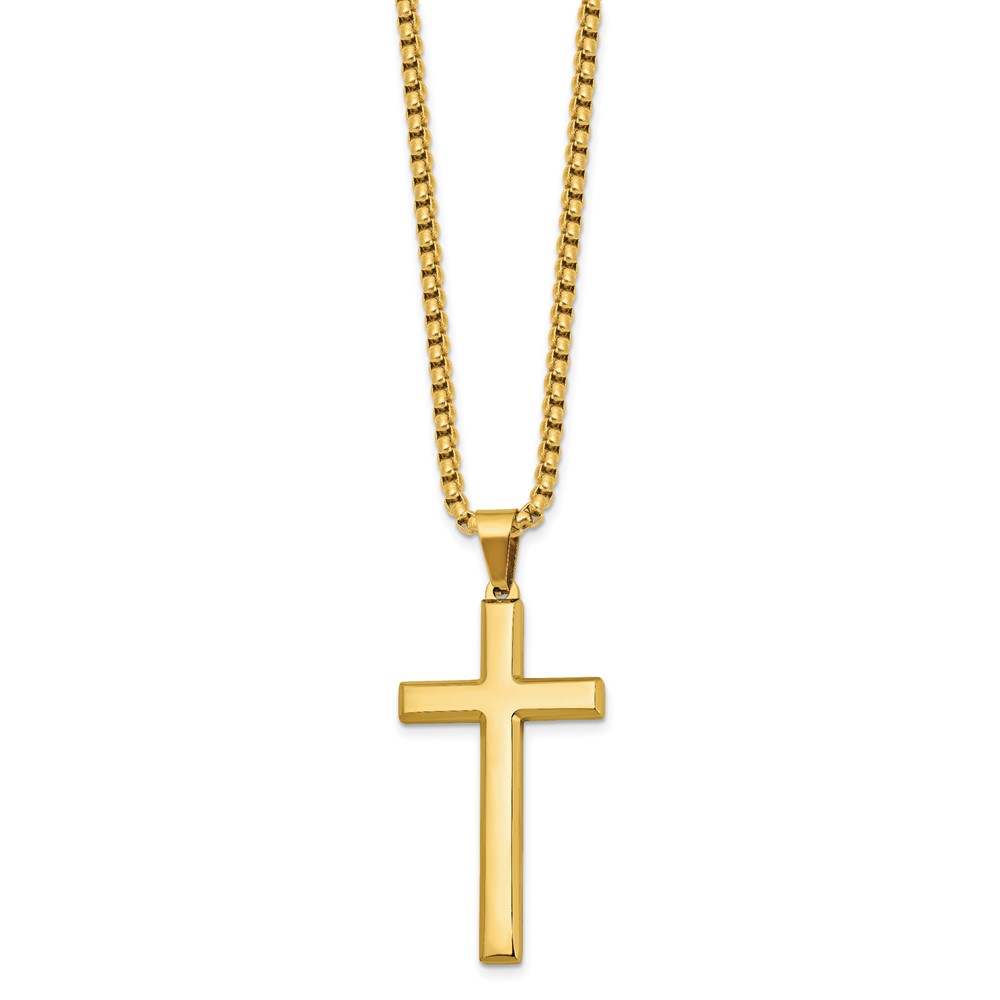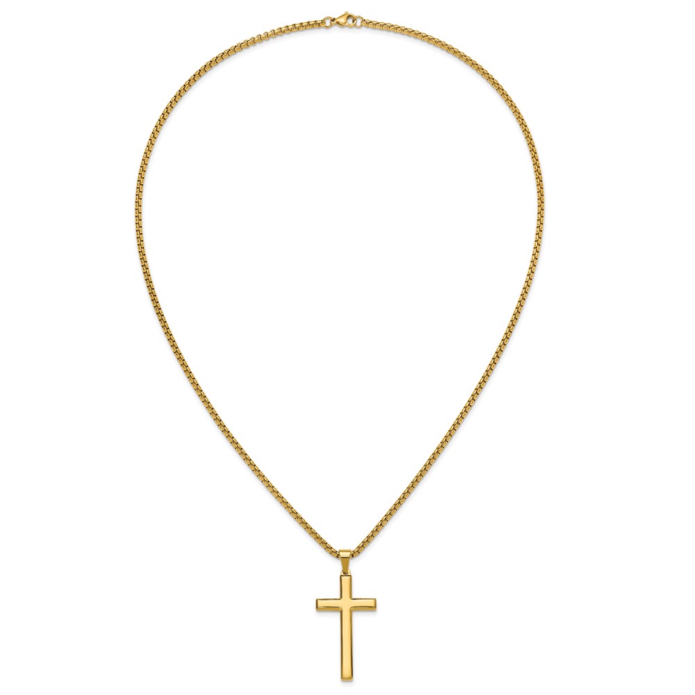 Chisel Stainless Steel Polished Yellow IP-plated Cross Pendant on a 24 inch Box Chain Necklace