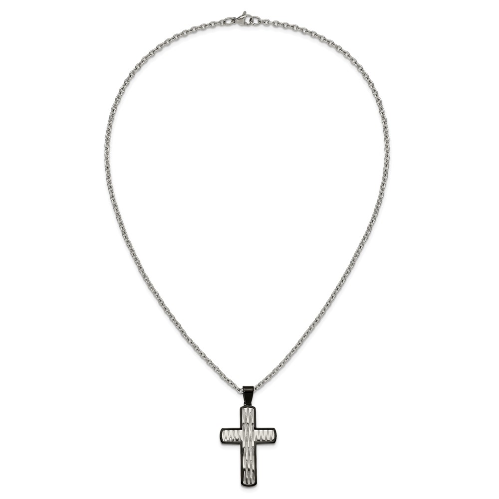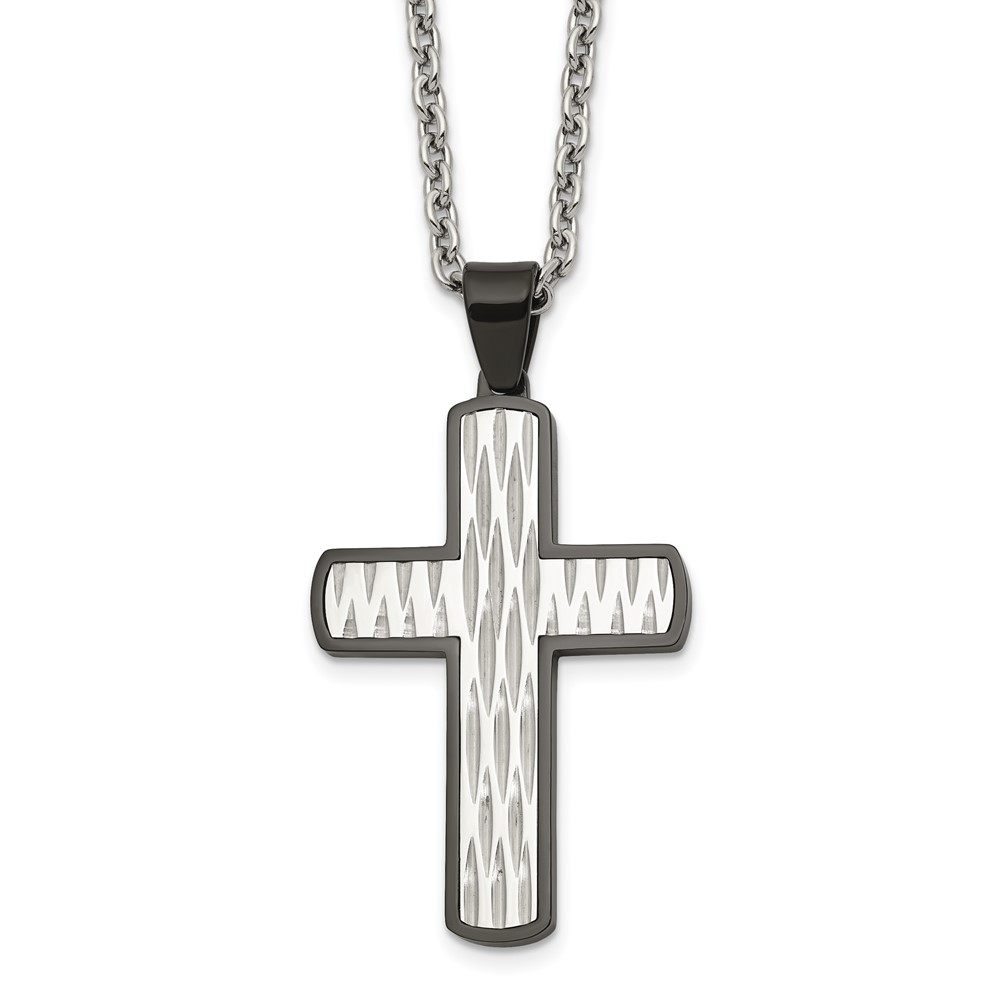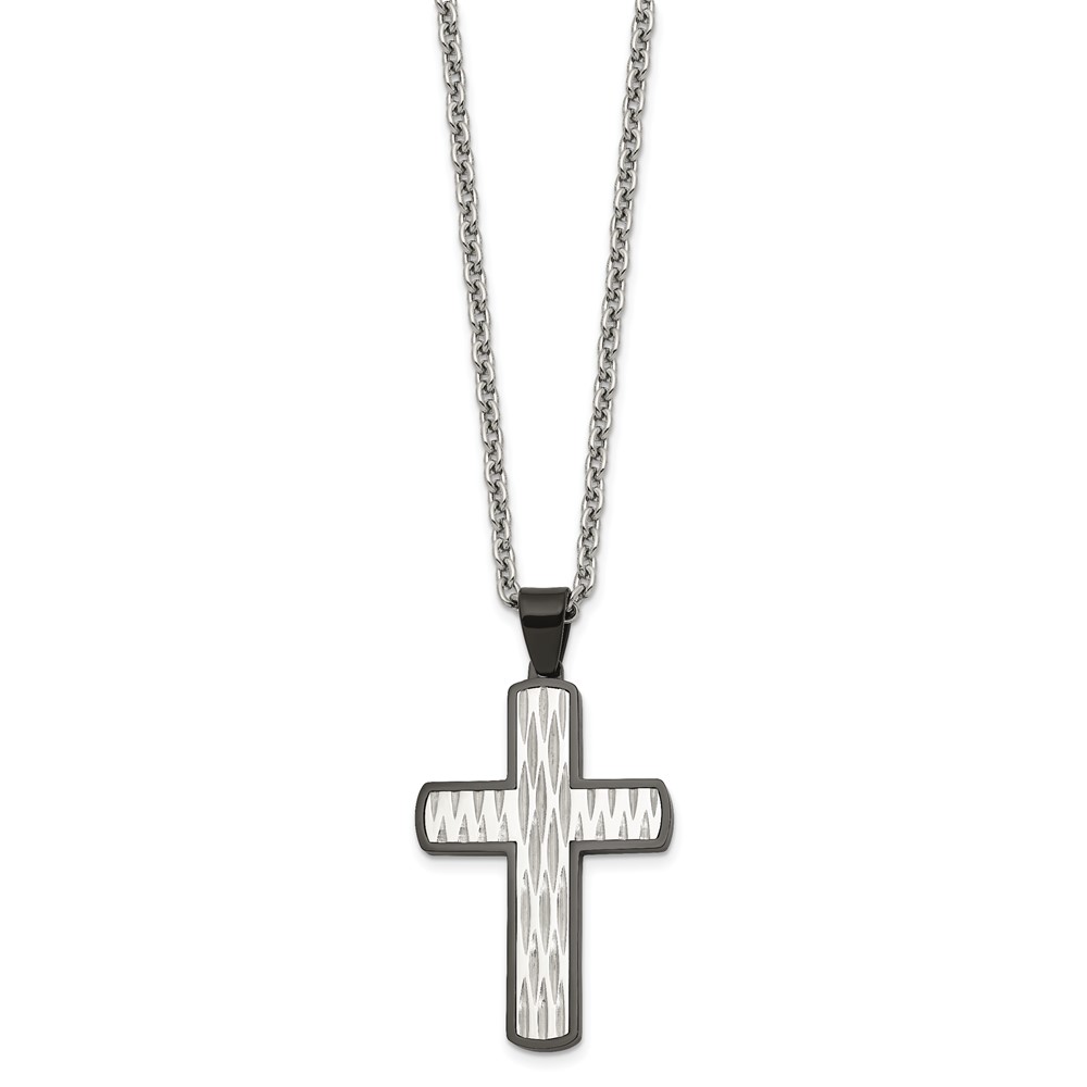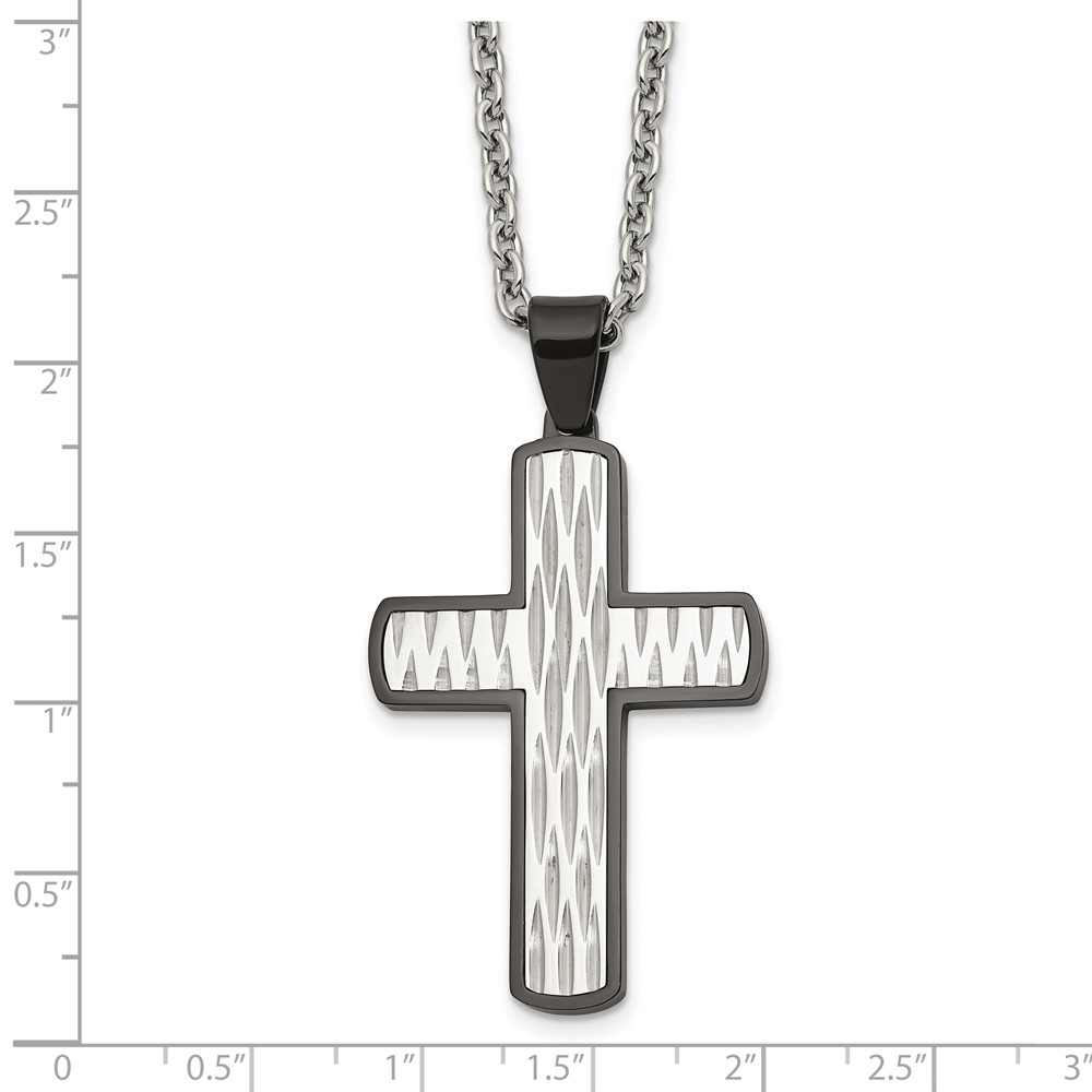 Chisel Stainless Steel Polished Diamond-cut Black IP-plated Cross Pendant on a 24 inch Cable Chain Necklace