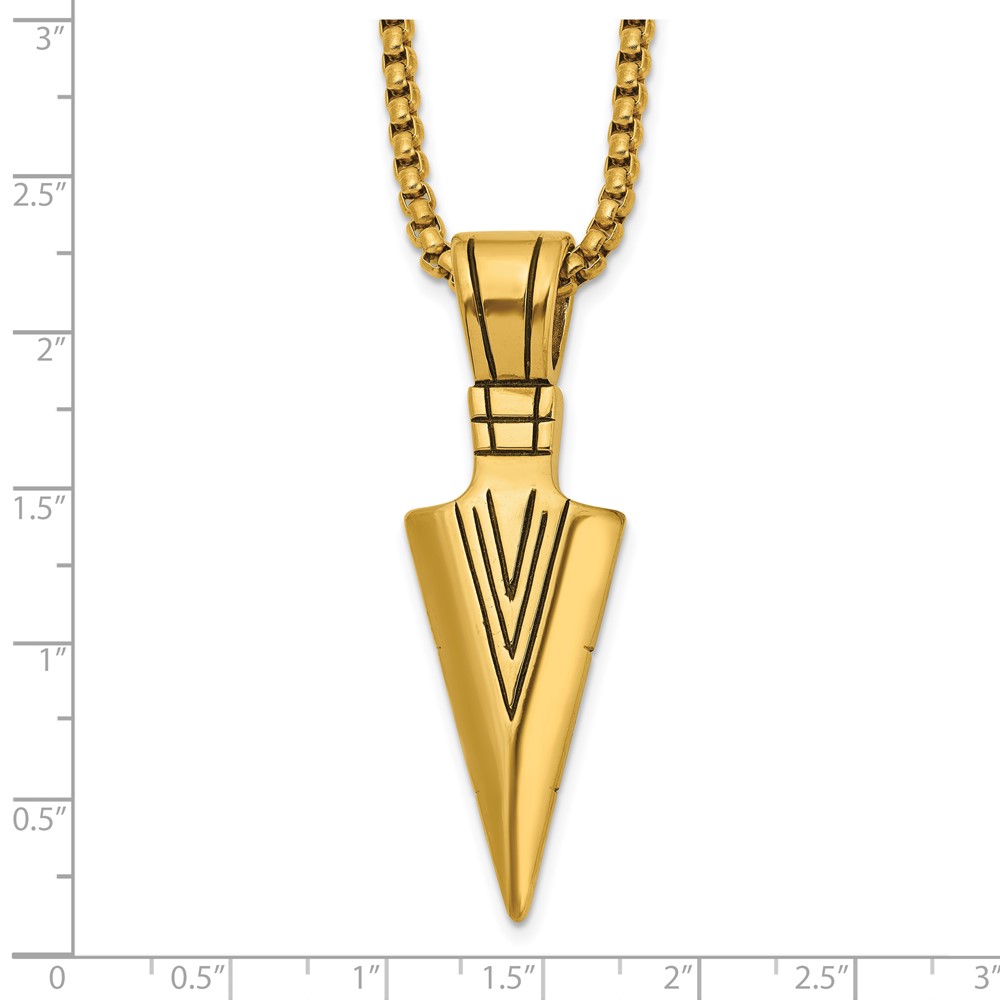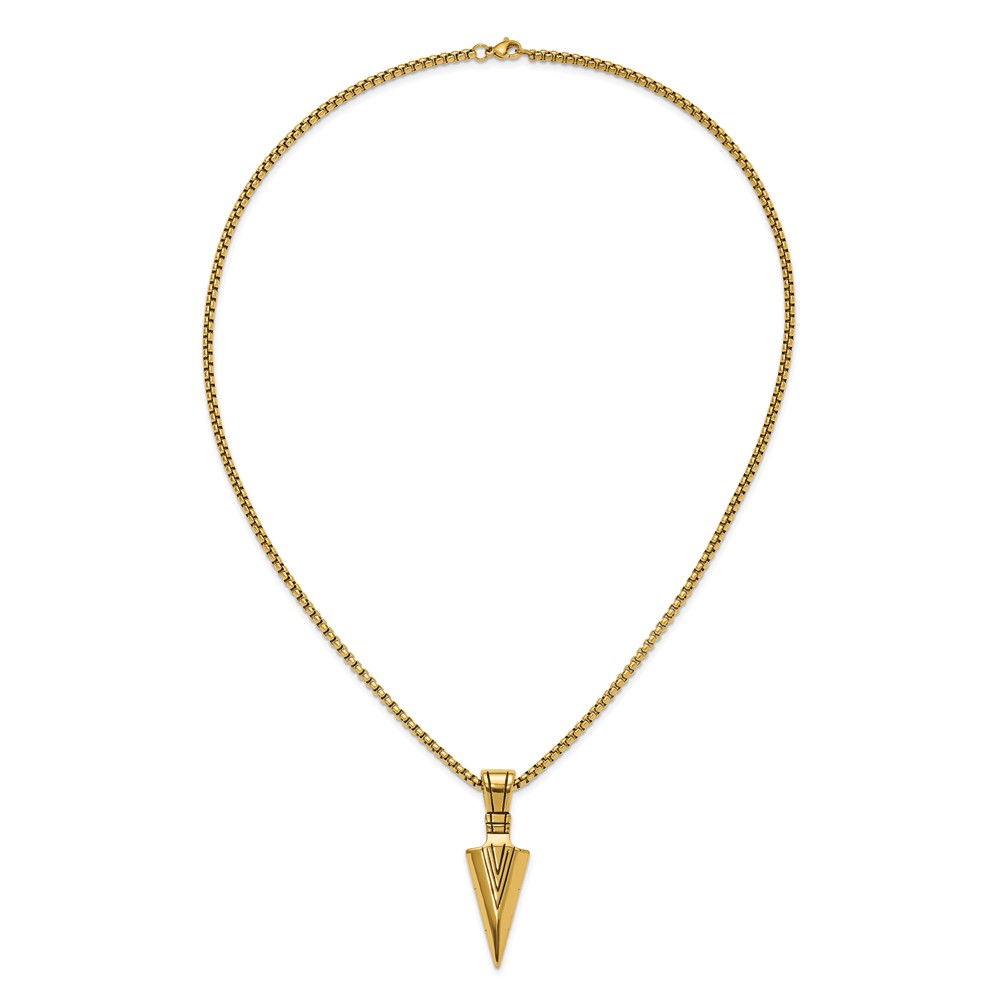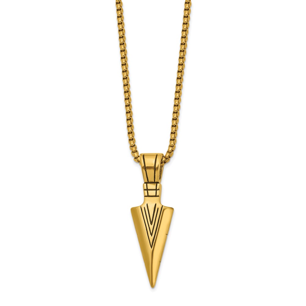 Chisel Stainless Steel Antiqued and Polished Arrowhead Pendant on a 22 inch Box Chain Necklace