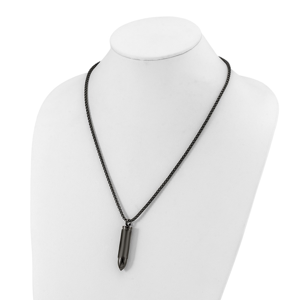Chisel Stainless Steel Brushed and Polished Black IP-plated Bullet Capsule Pendant on a 22 inch Box Chain Necklace