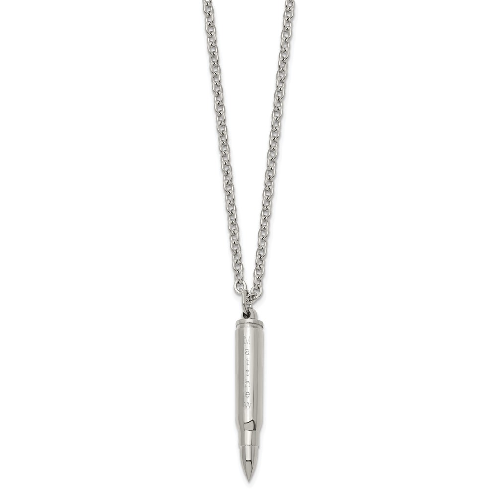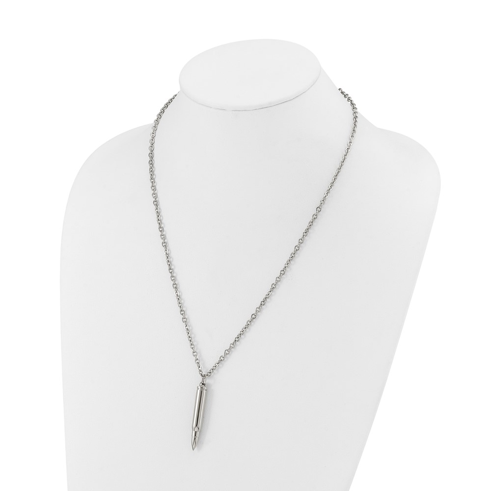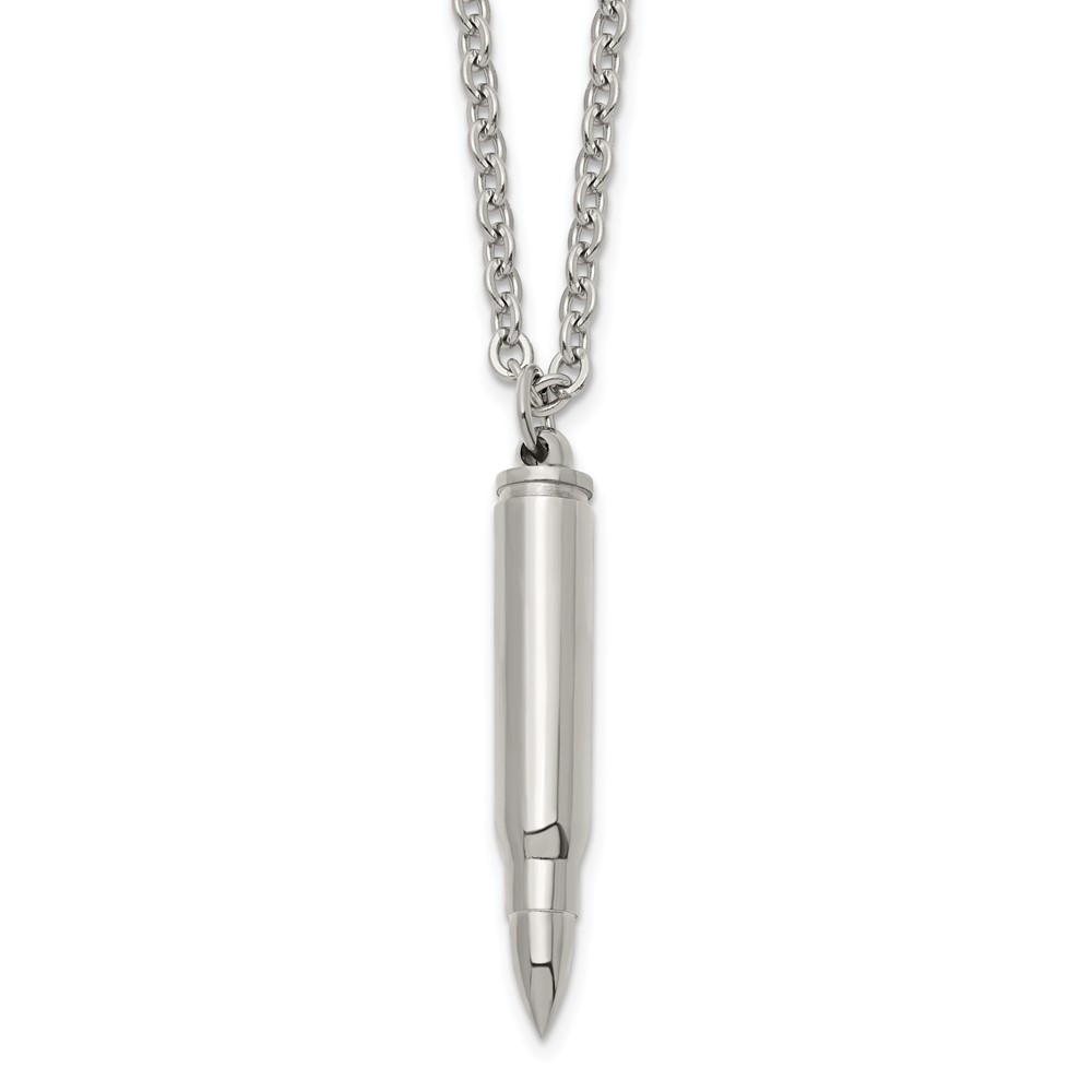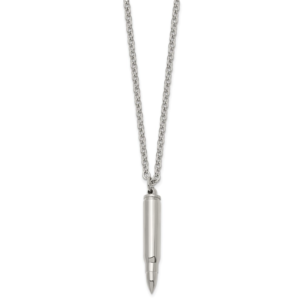 Chisel Stainless Steel Polished Bullet Capsule Pendant on a 20 inch Plus 2 inch Extension Cable Chain Necklace