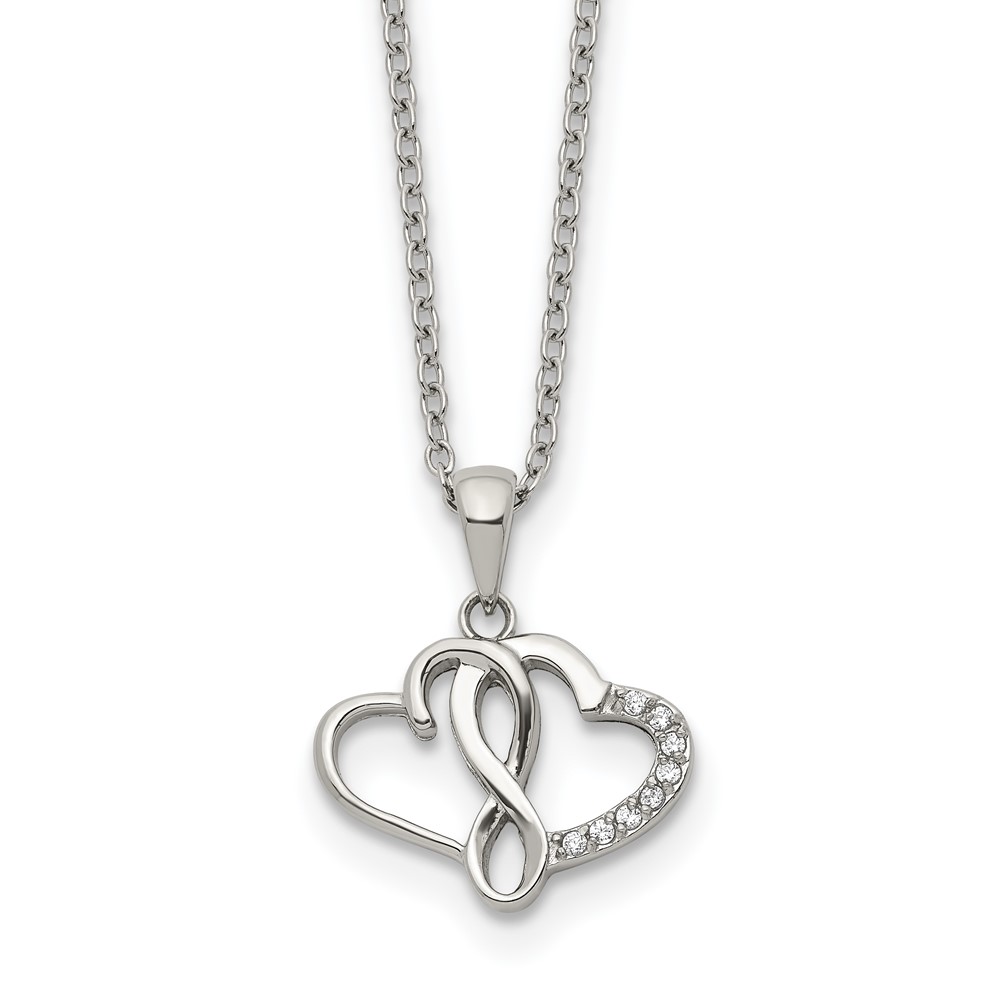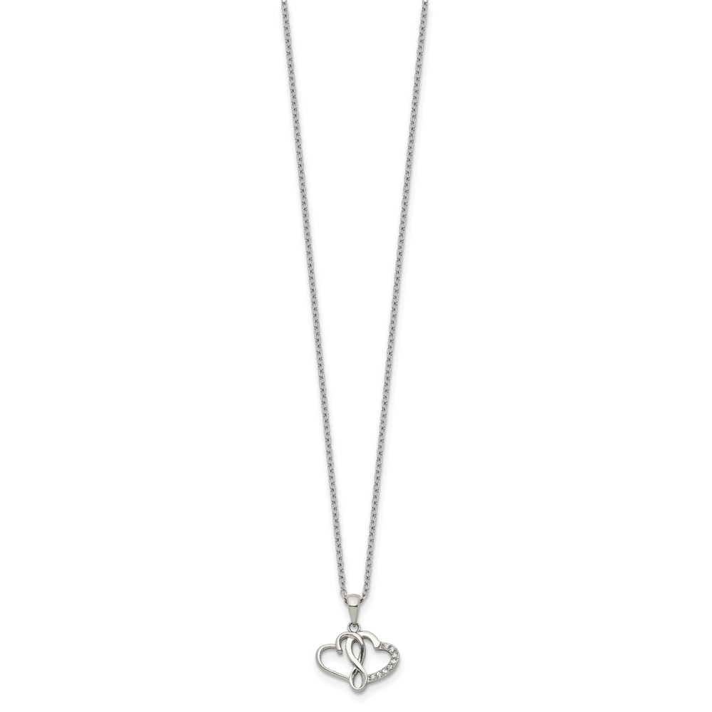 Chisel Stainless Steel Polished CZ Infinity Double Hearts Pendant on an 18 inch Plus a 2 inch Extension Cable Chain Necklace