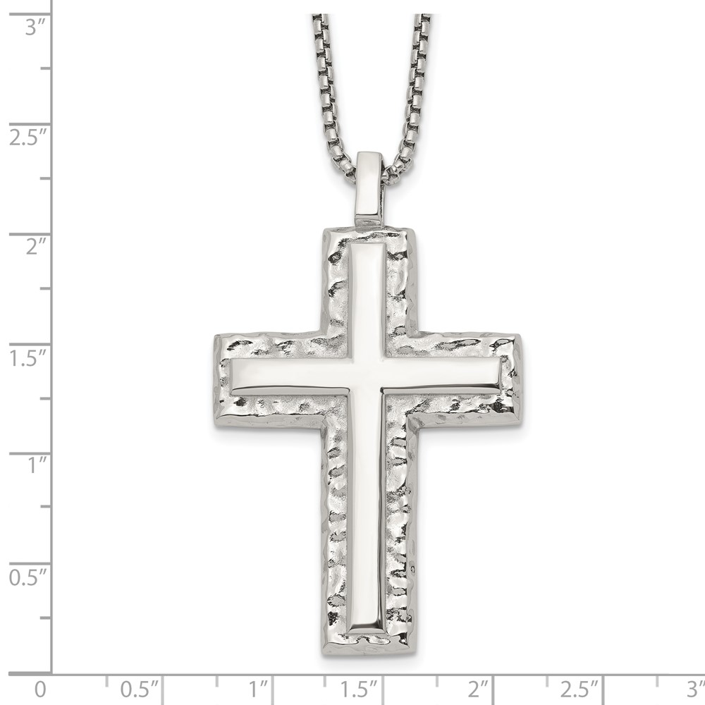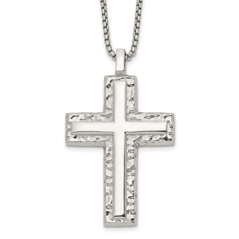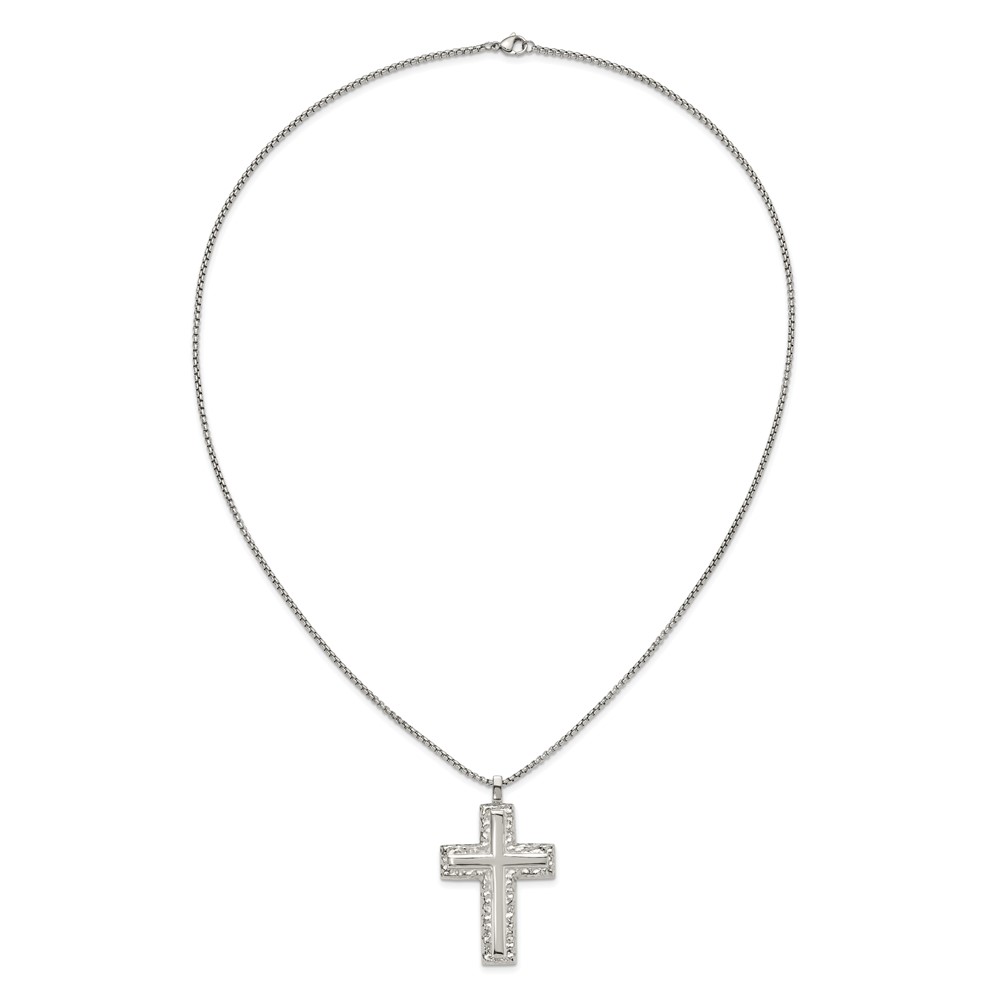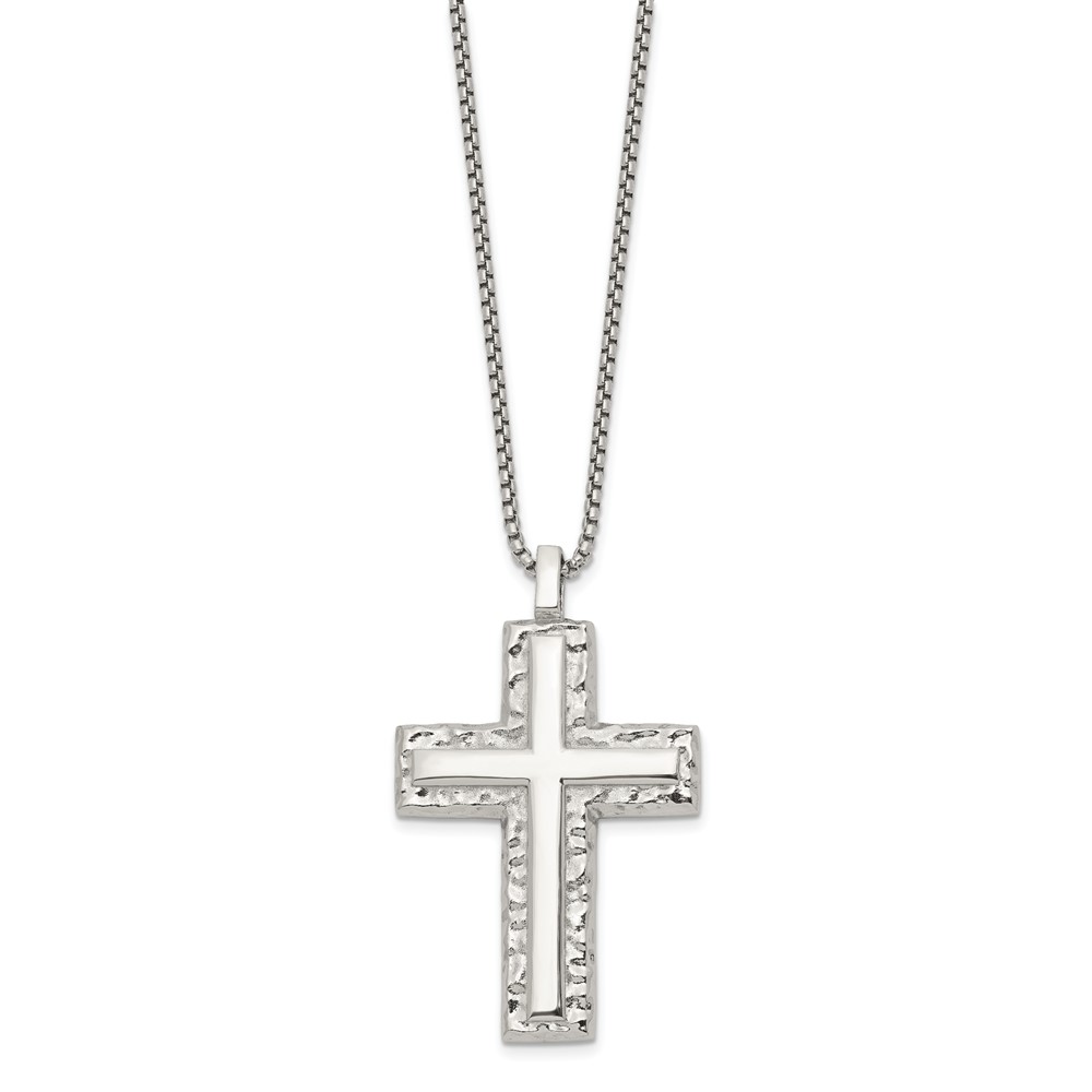 Chisel Stainless Steel Polished and Textured Cross Pendant on a 24 inch Box Chain Necklace