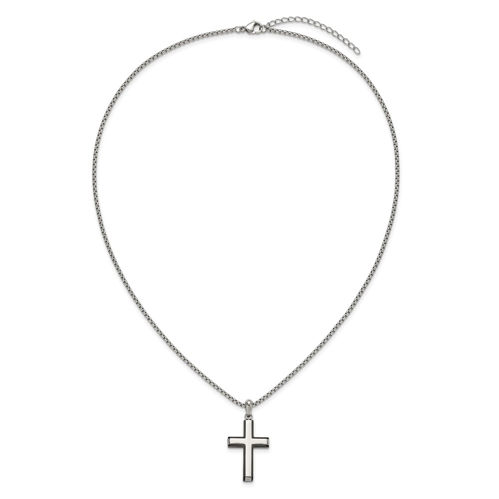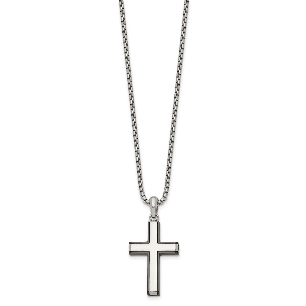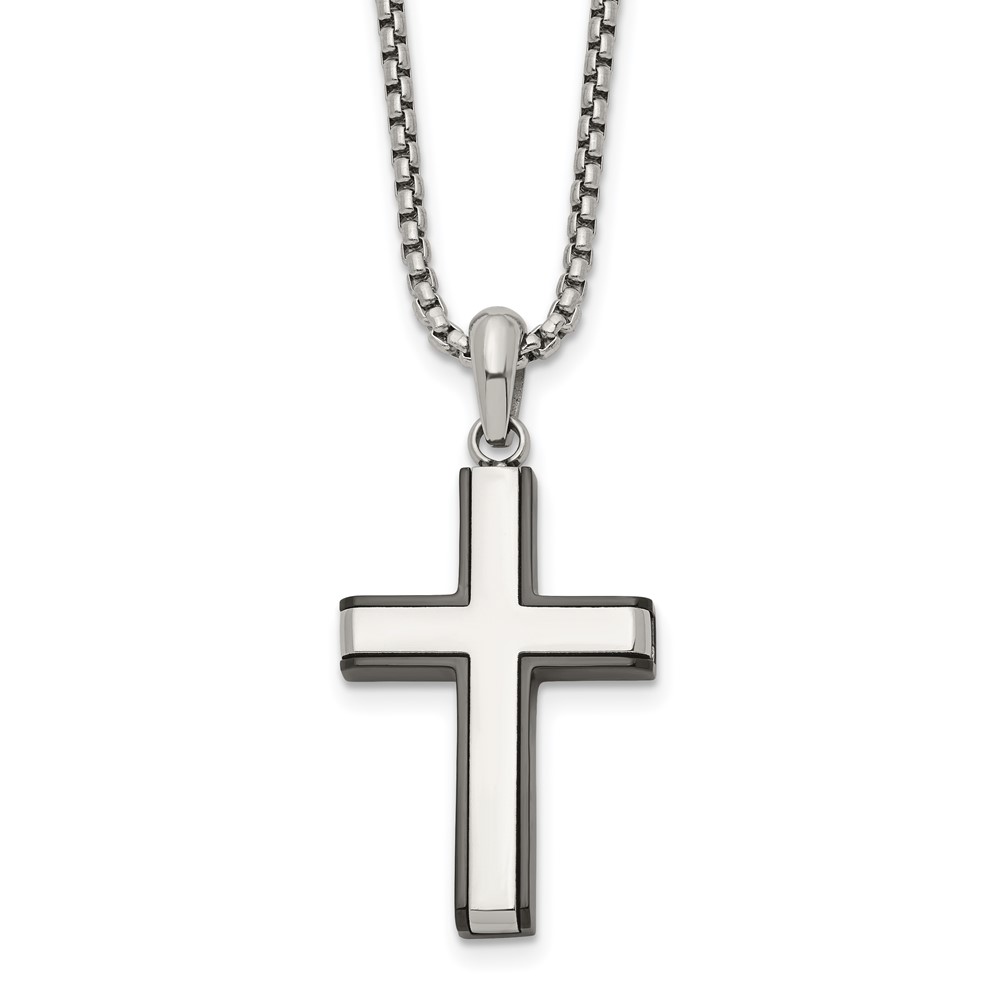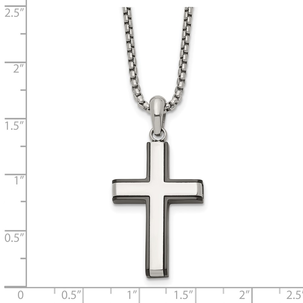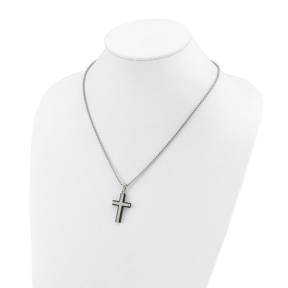 Chisel Stainless Steel Polished Black IP-plated Edges Cross Pendant on a 20 inch Box Chain Necklace