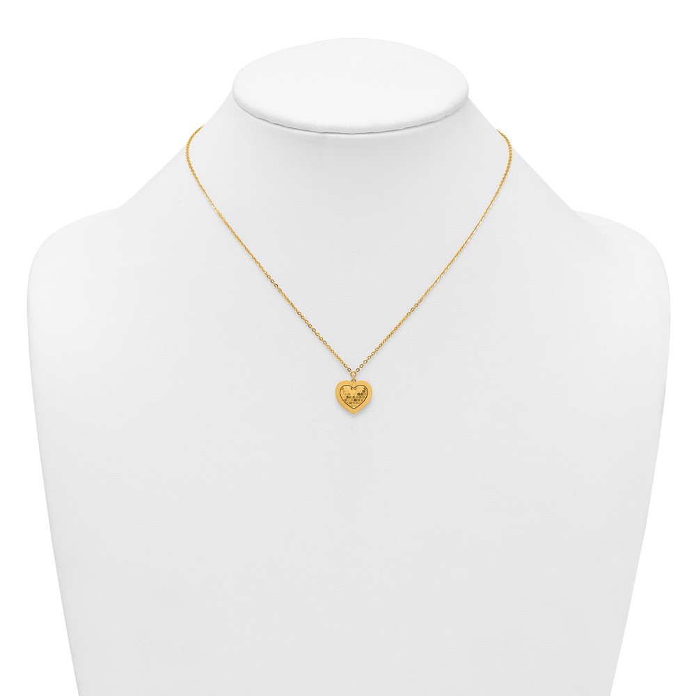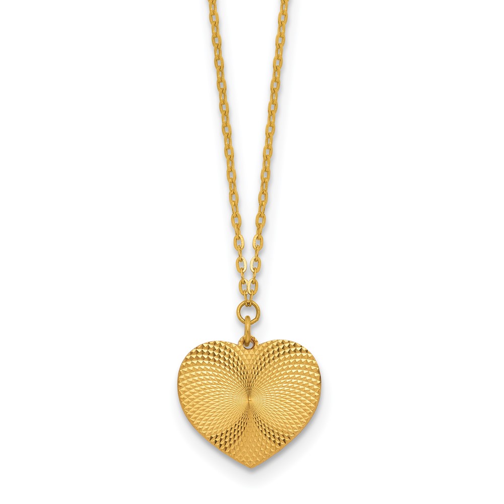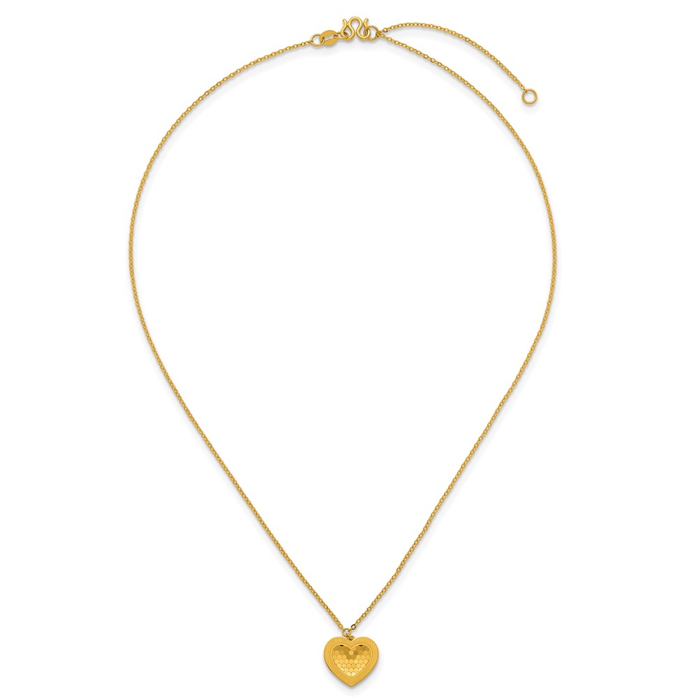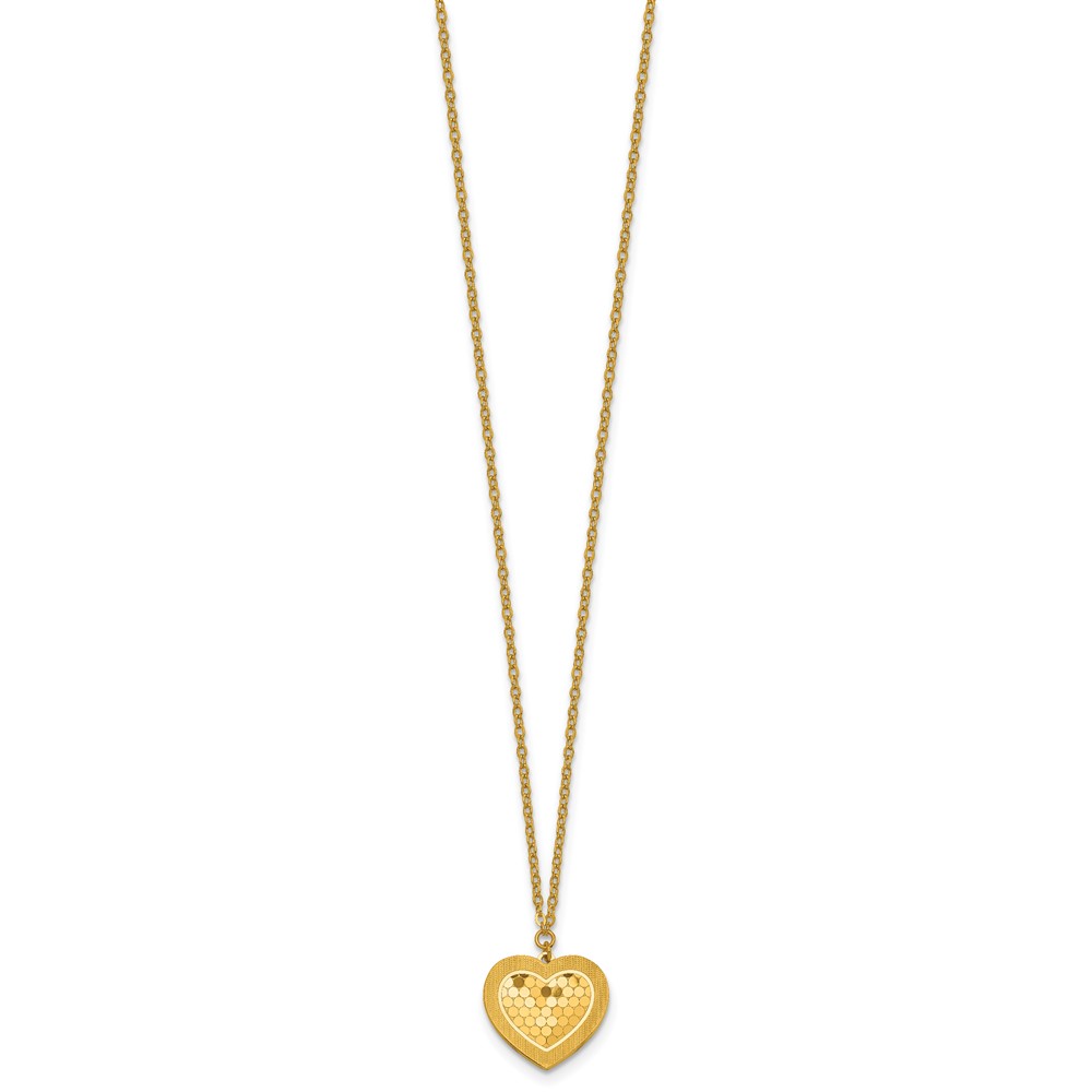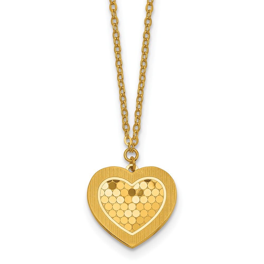 Herco 24K Polished and Textured Solid Heart 16 Inch with 2 Inch Extension Necklace