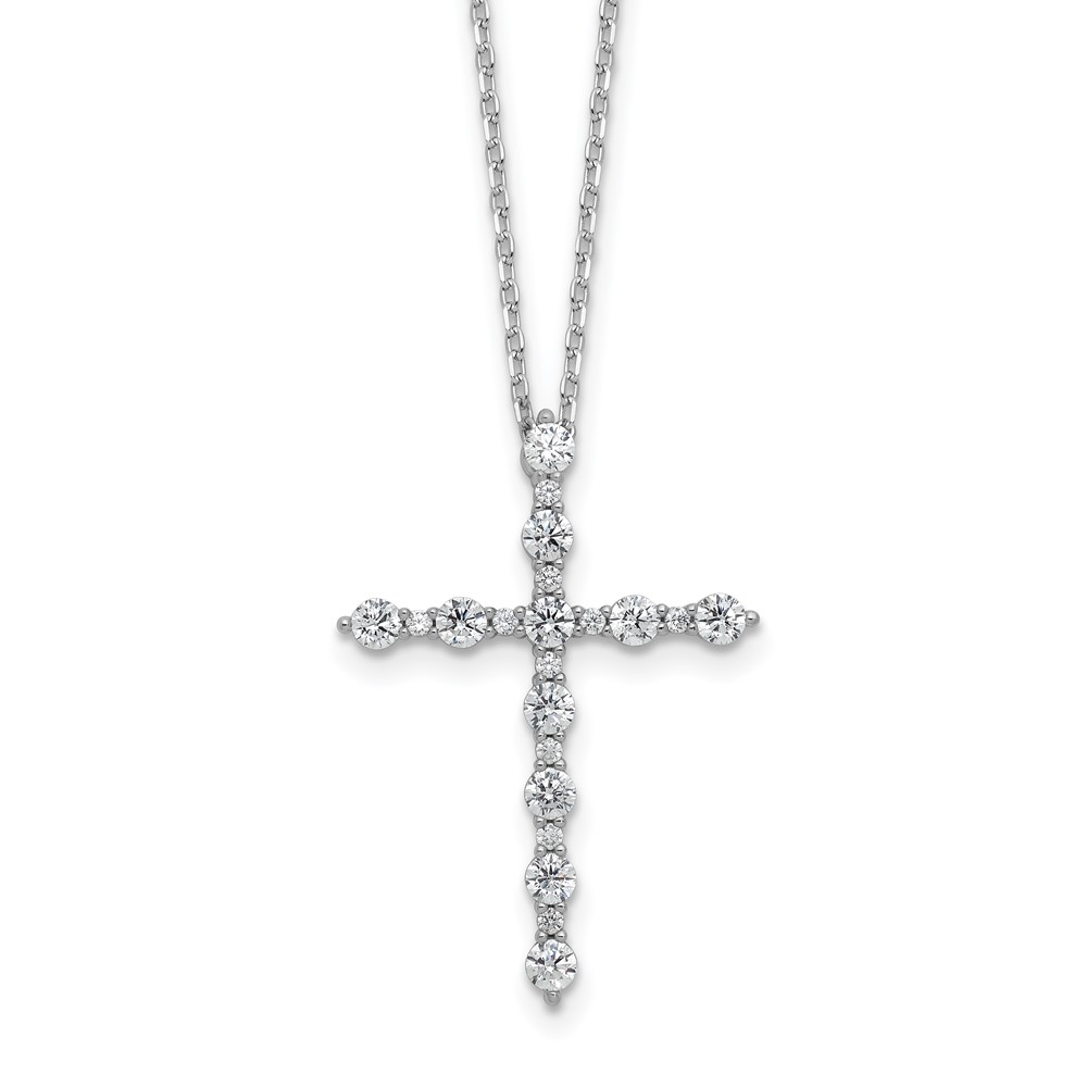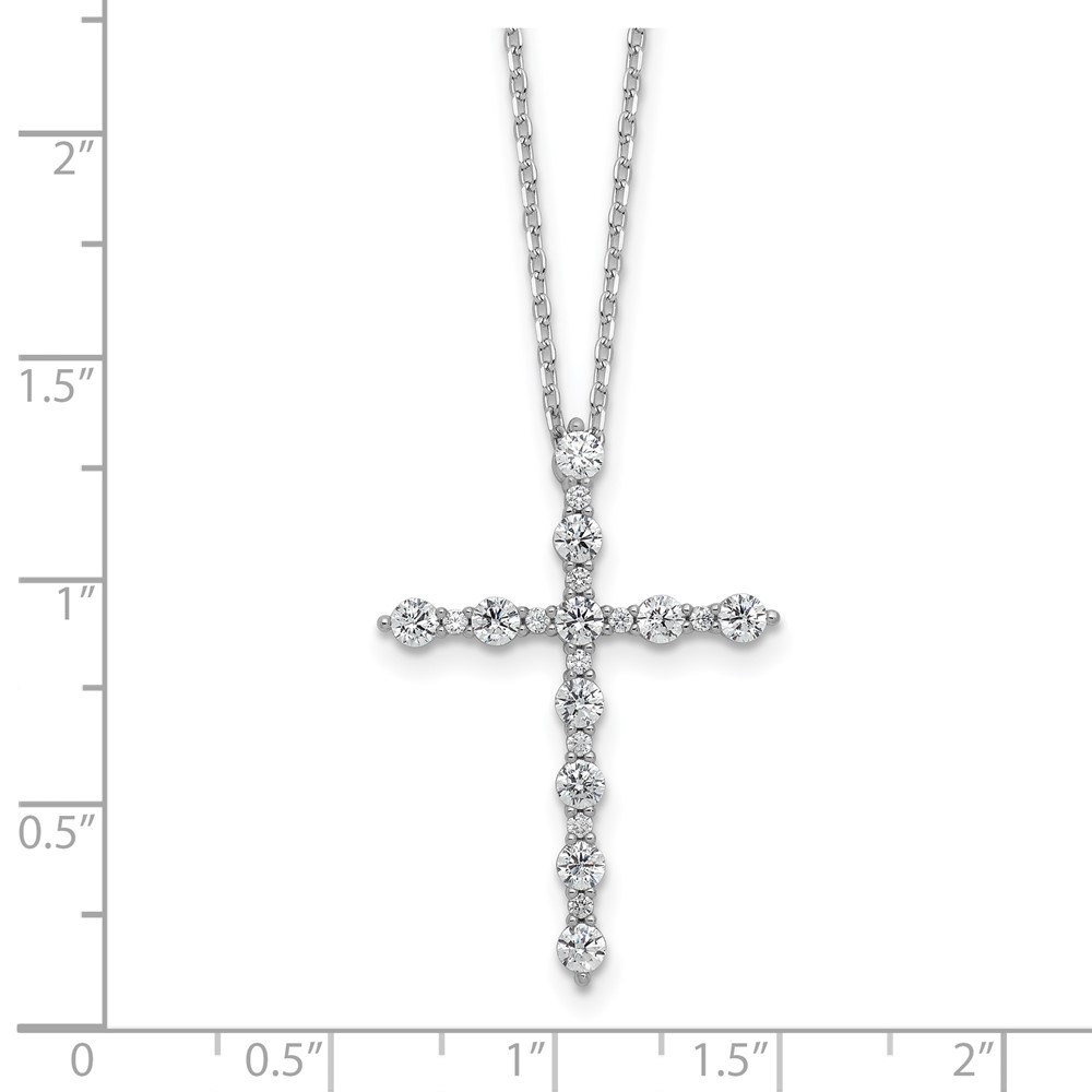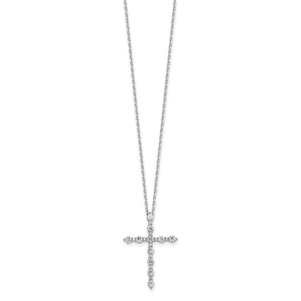 Sterling Shimmer Sterling Silver Rhodium-plated CZ 21 Stone Cross 16 inch with 2 inch Extension Necklace