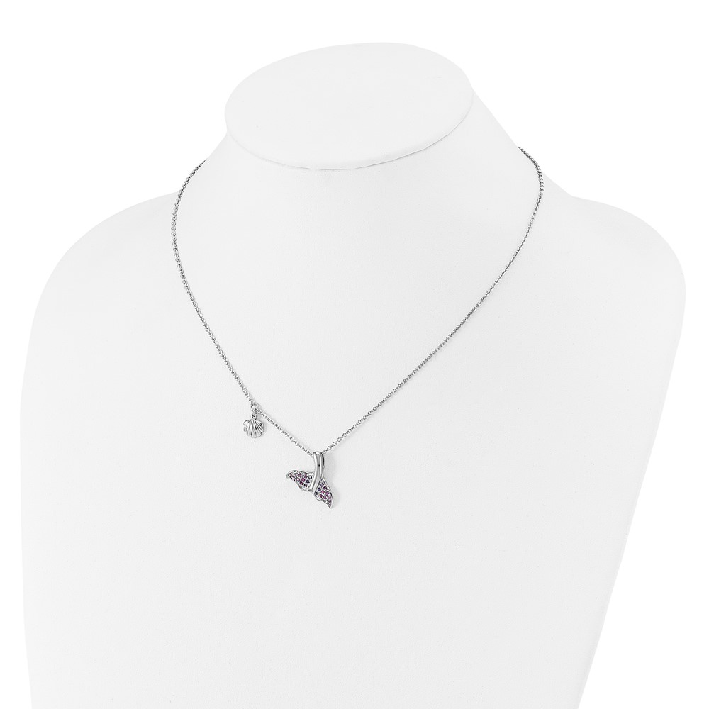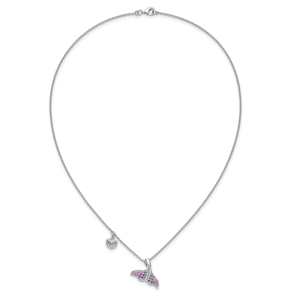Sterling Silver Rhodium-plated Polished CZ Whale Tail 17.75in Necklace