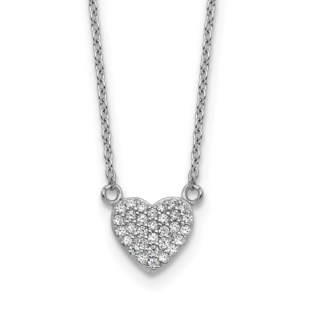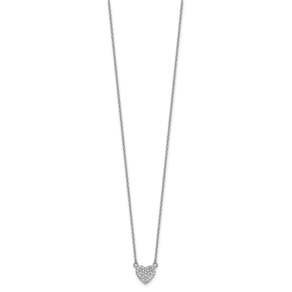 Cheryl M Sterling Silver Rhodium-plated Polished Pave CZ Heart Necklace