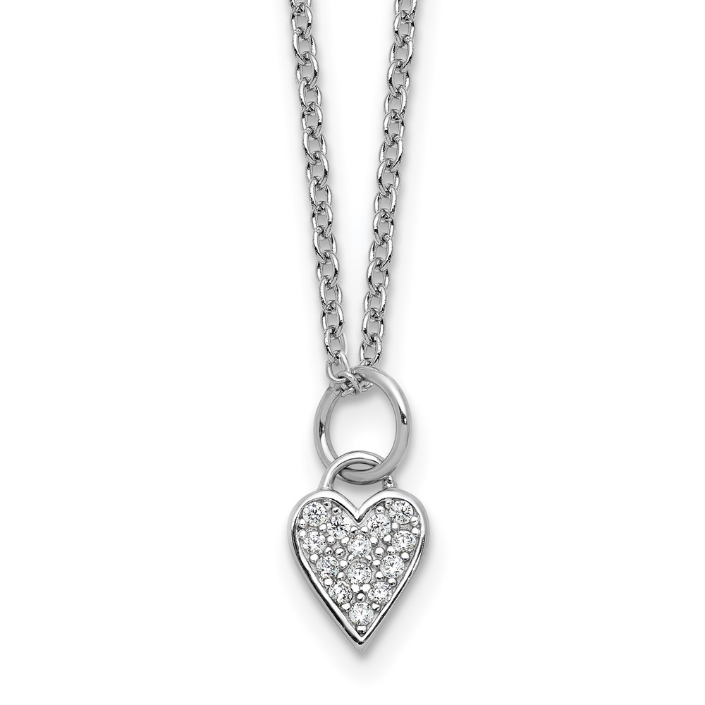 Cheryl M Sterling Silver Rhodium-plated Polished CZ Heart with 2 Inch Extension Necklace