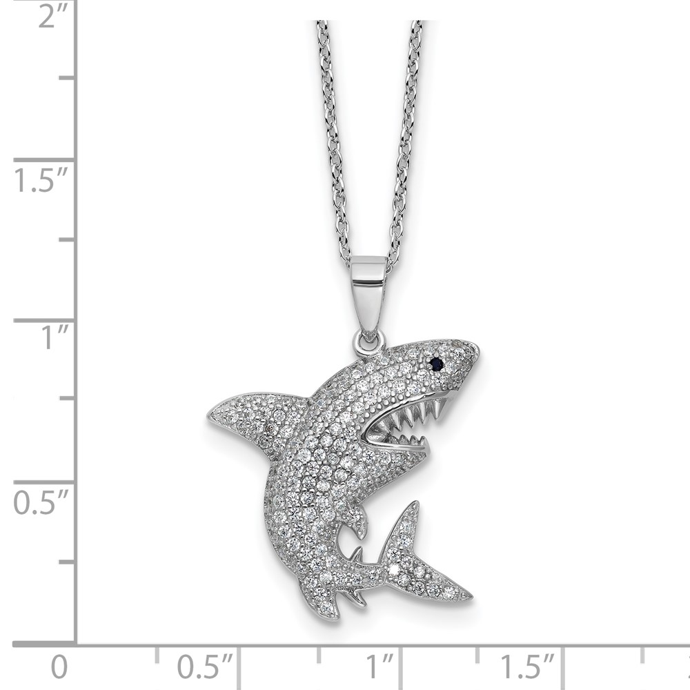 Cheryl M Sterling Silver Rhodium-plated Polished Lab Created Black Spinel and CZ Shark with 2 Inch Extension Necklace