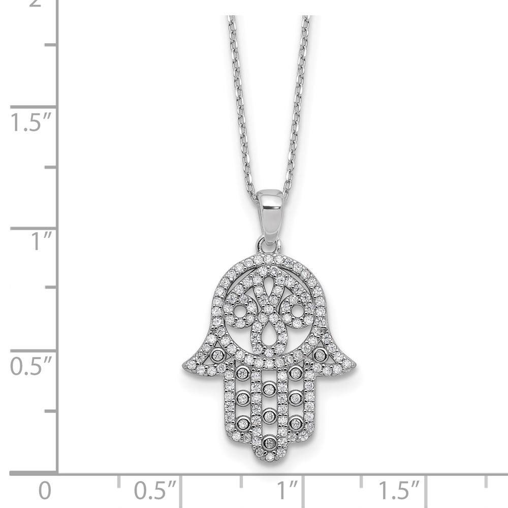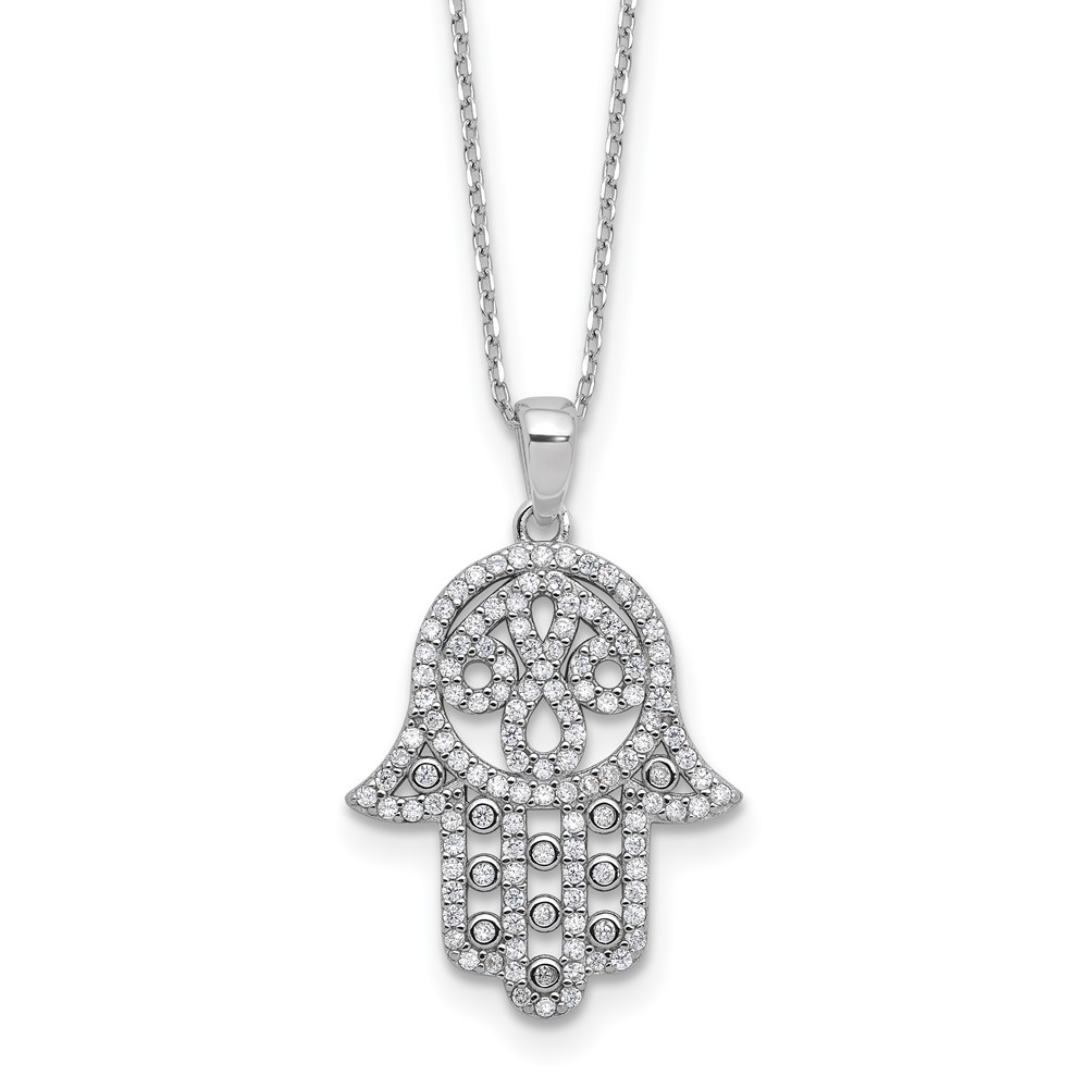 Cheryl M Sterling Silver Rhodium-plated Polished CZ Hamsa Necklace