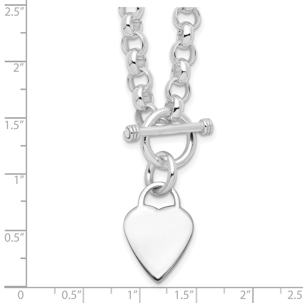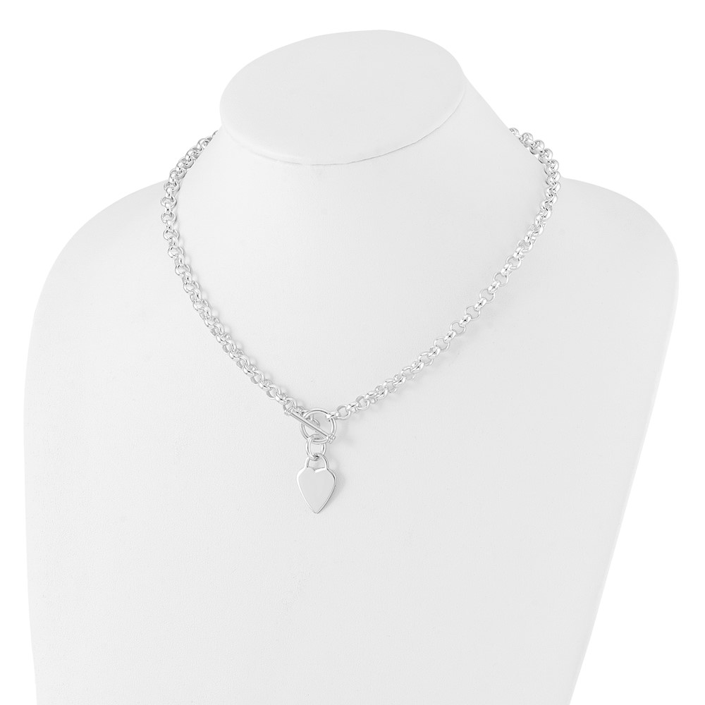 Sterling Silver RH-plated Heart Disc on Toggle Necklace