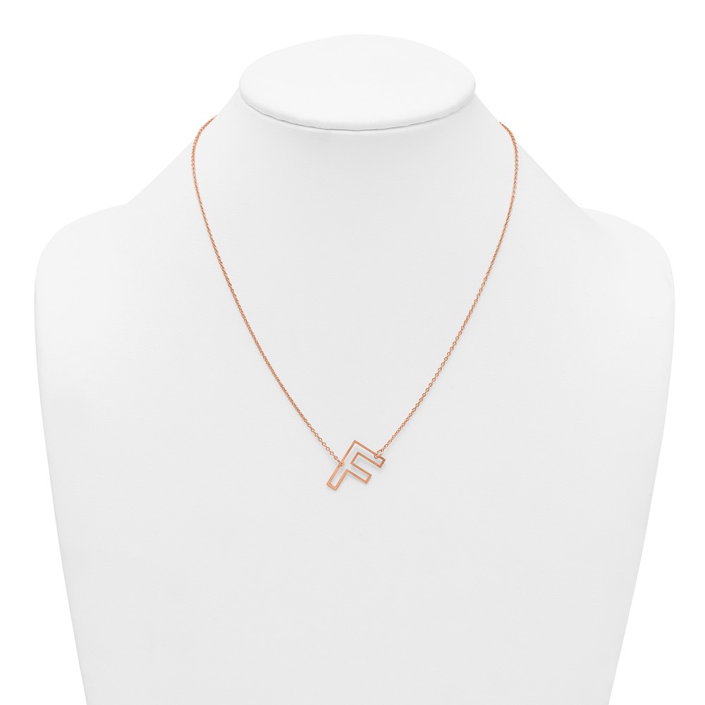 Sterling Silver/Rose Gold-Plated Sideways Cut Out Initial F Necklace