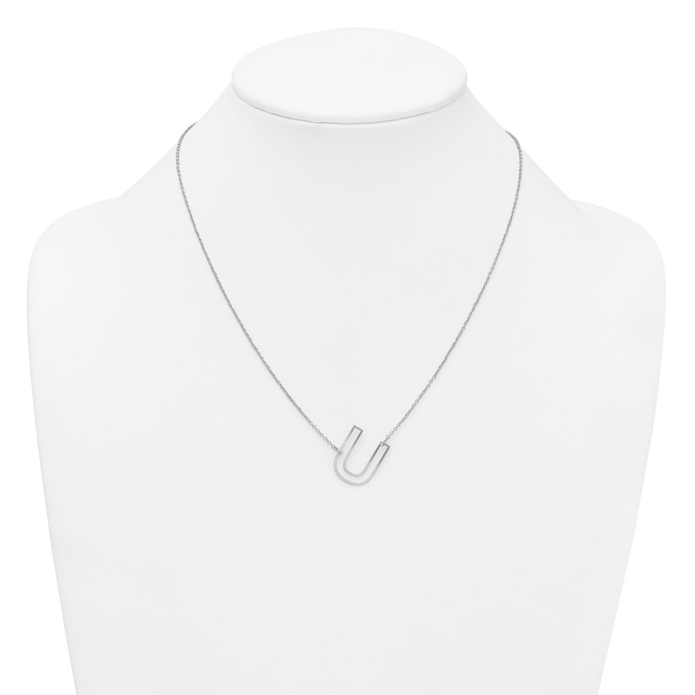 Sterling Silver Sideways Cut Out Initial U Necklace