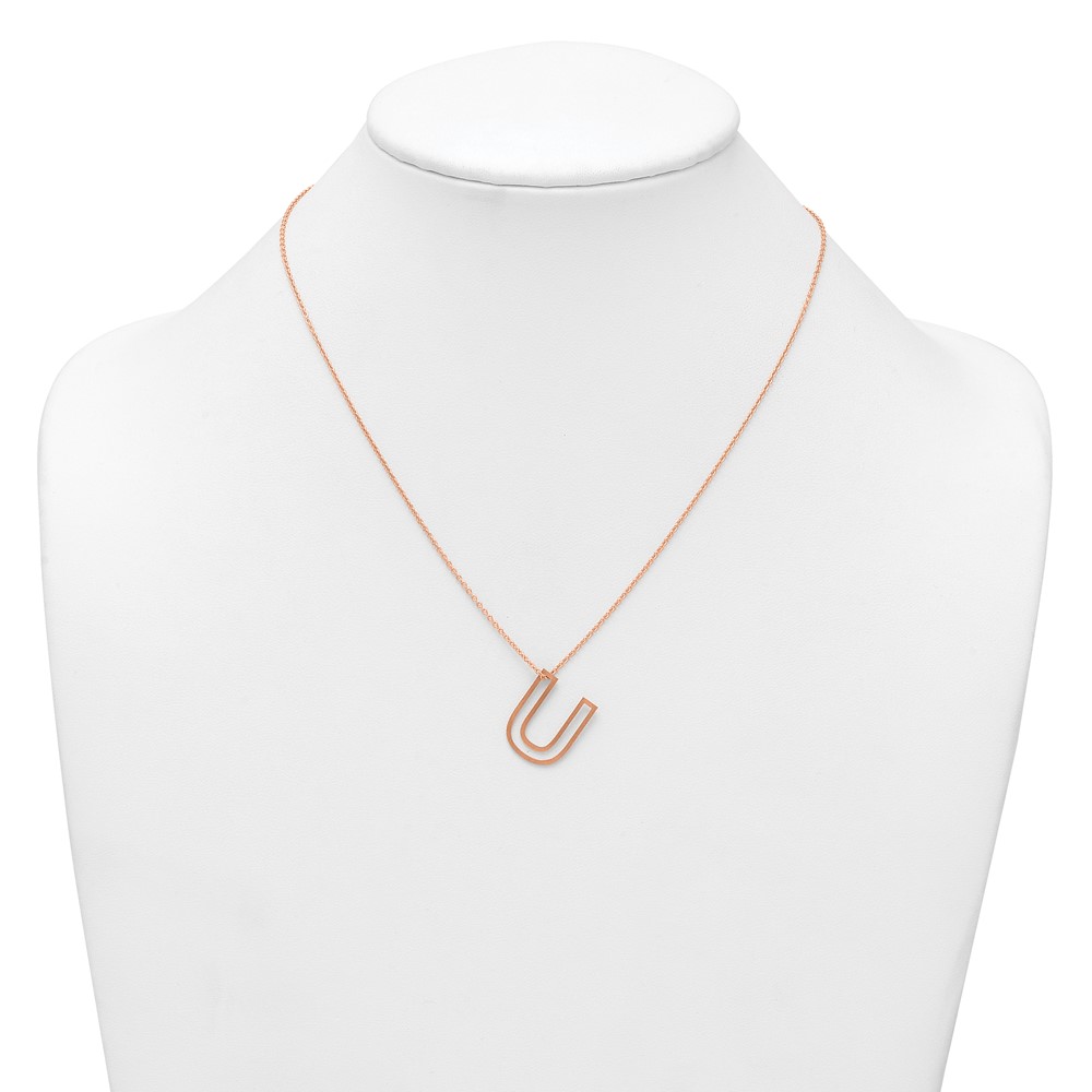 Sterling Silver/Rose Gold-Plated Cut Out Slide Initial U Necklace