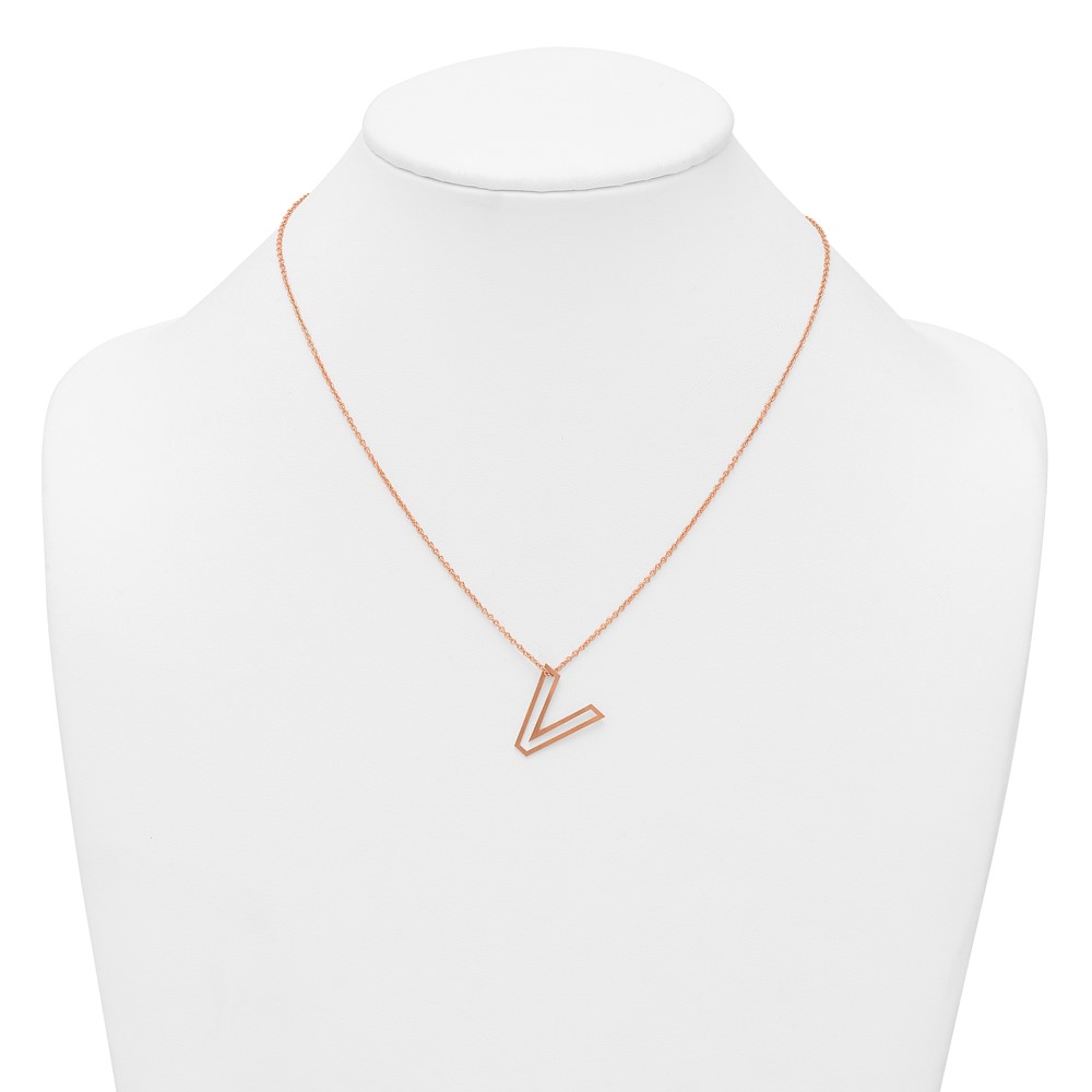 Sterling Silver/Rose Gold-Plated Cut Out Slide Initial V Necklace